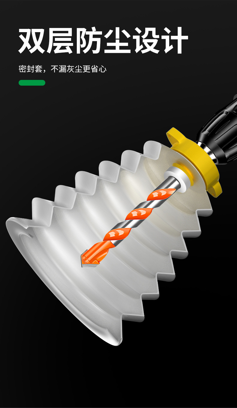 • [업그레이드 모델] 3세대 더스트커버는 160mm 드릴비트(10개)에 적합합니다.