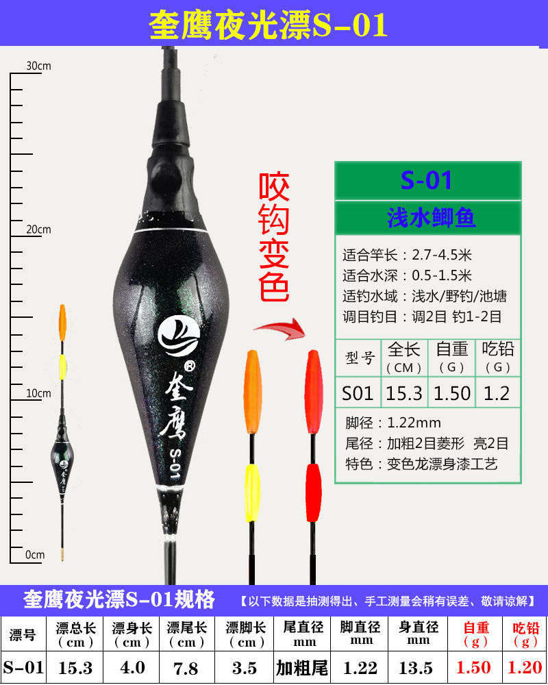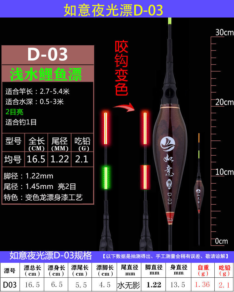 • D01 얕은 물 붕어 찌는 1.03g의 납을 먹습니다.
