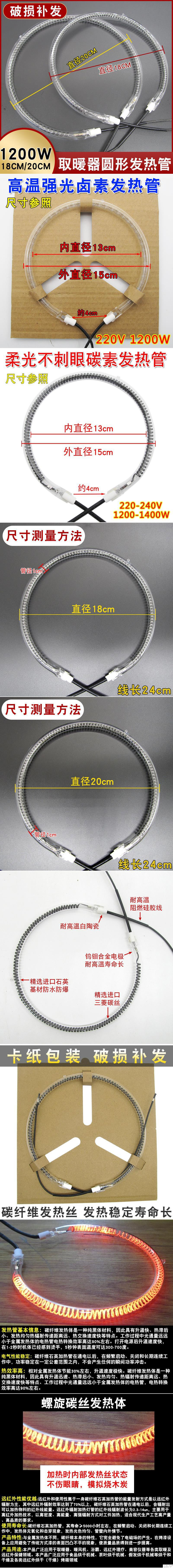 히터 가열 튜브 액세서리 작은 태양 전기 가열 팬 공기 프라이어 가열 튜브 18/20cm 광파로 튜브스토어 가기