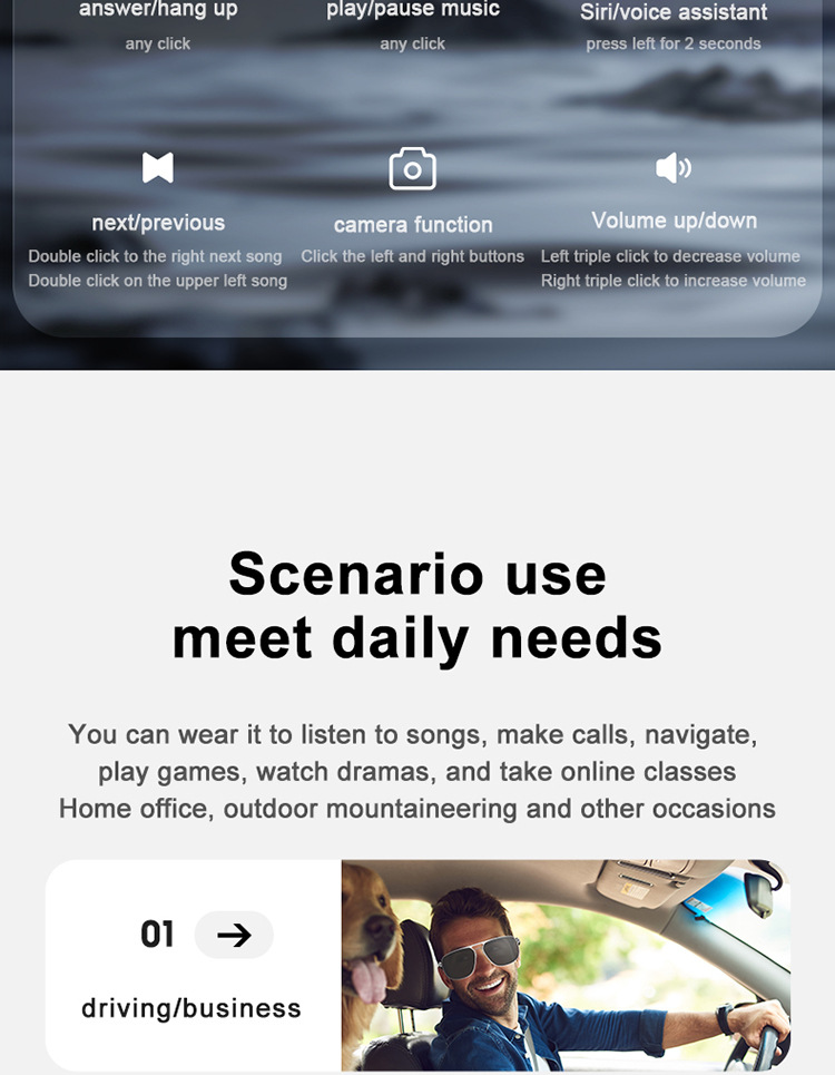 G01 스마트 안경 블루투스 전화 음악 야외 선글라스 멀티 기능 블루투스 안경 국경 새로운스토어 가기