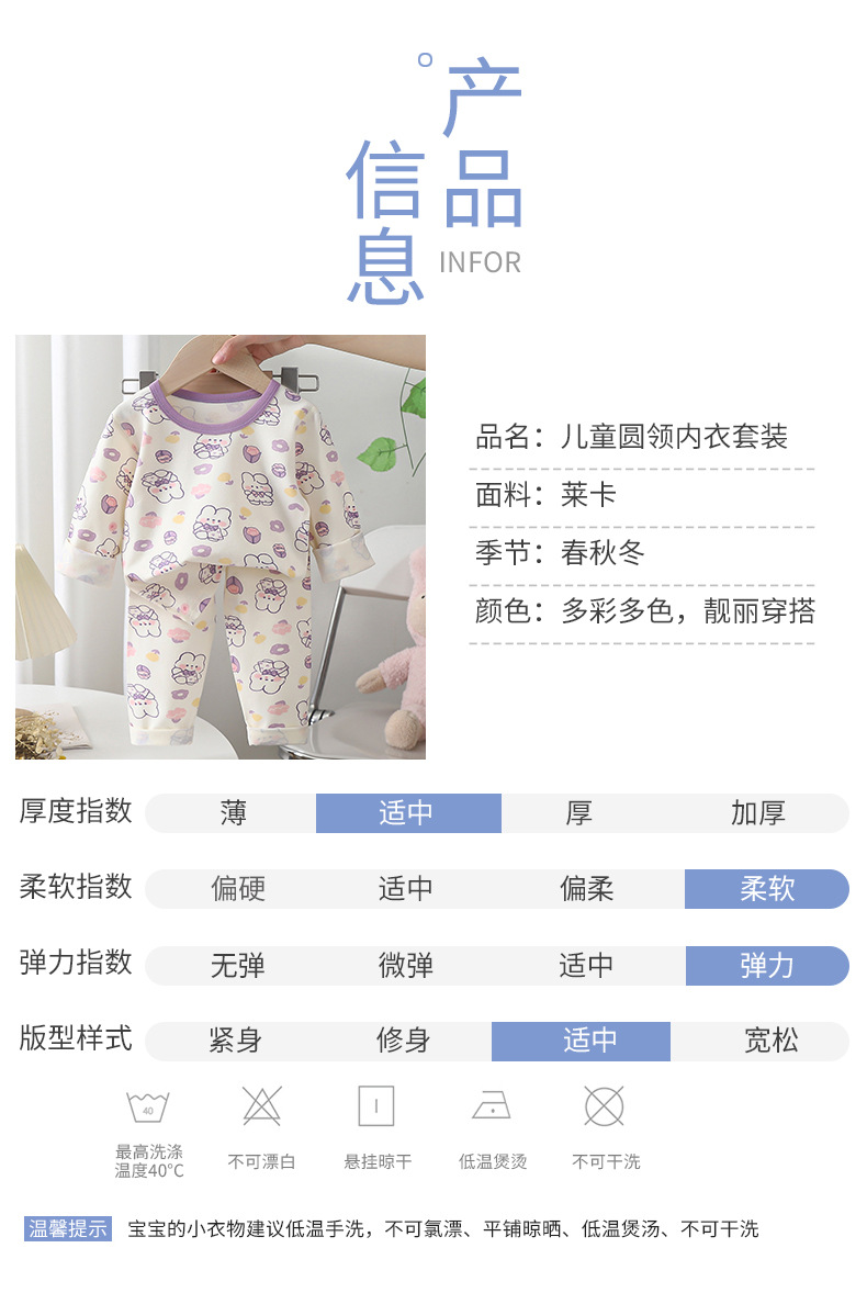 새로운 어린이 속옷 세트 클래스 순면 뼈없는 라이크라 가을 옷 가을 바지 아기 잠옷 홈 옷스토어 가기