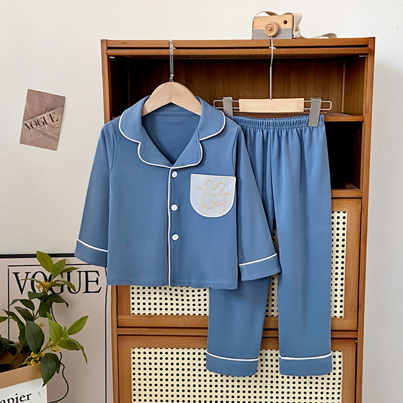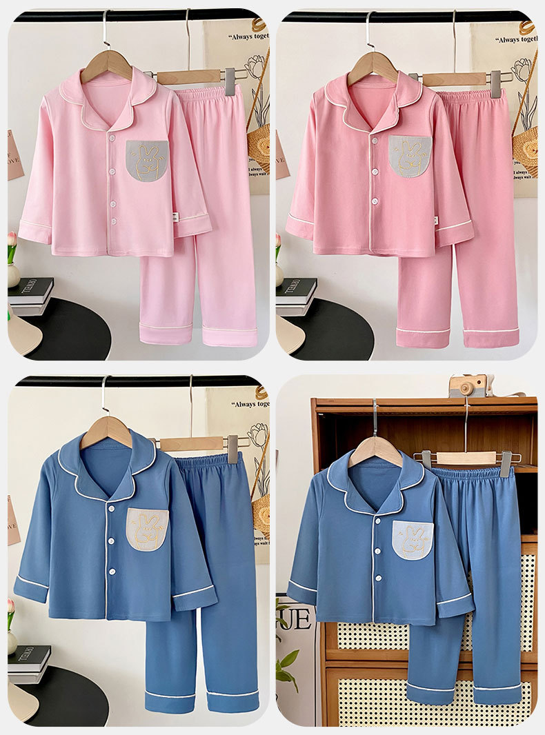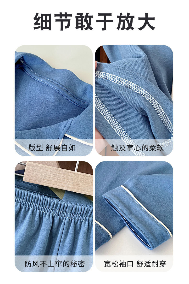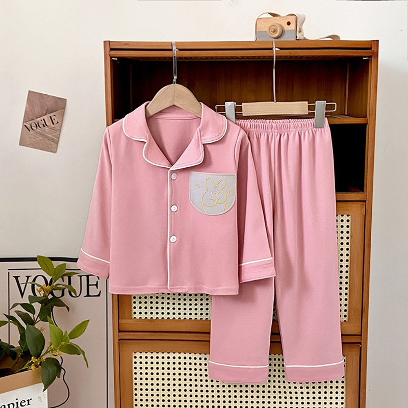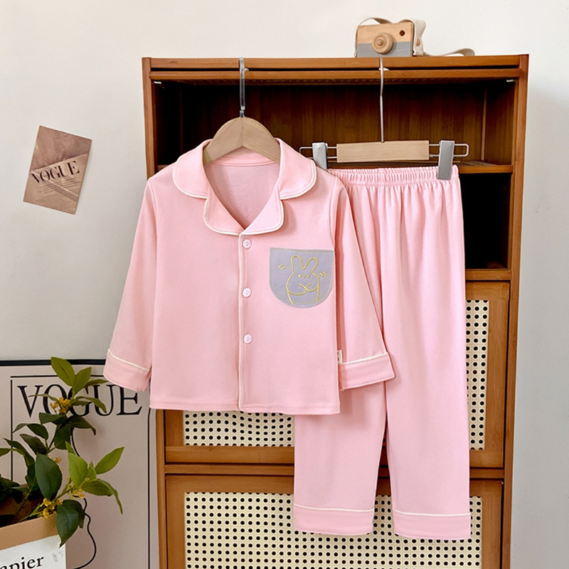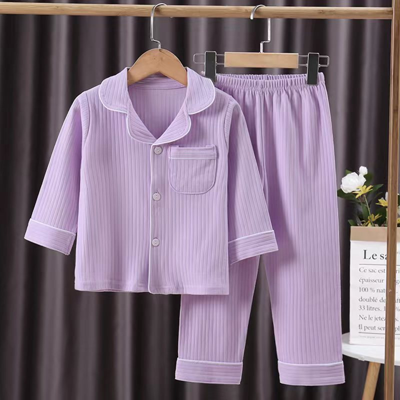 중년 및 대형 어린이를위한 어린이 잠옷 가을 및 겨울 클래스 소년 소녀를위한 순수한 면화 카디건 긴 소매 2 피스 홈 의류스토어 가기