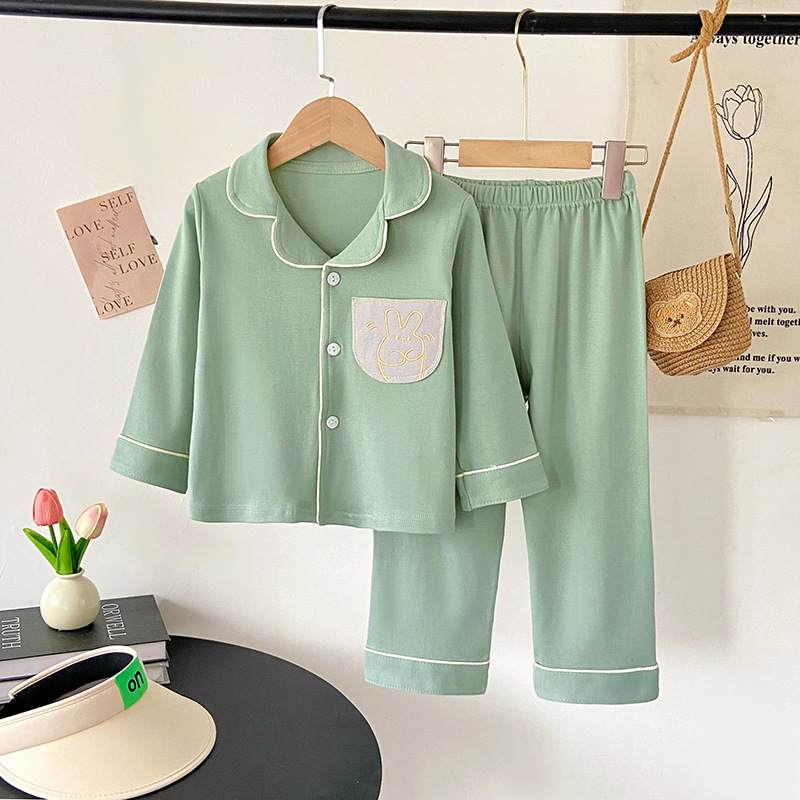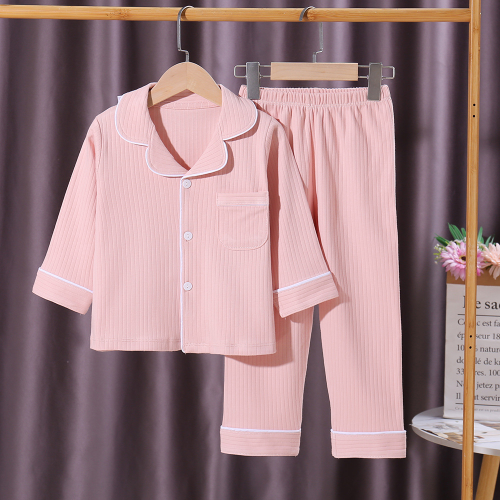 중년 및 대형 어린이를위한 어린이 잠옷 가을 및 겨울 클래스 소년 소녀를위한 순수한 면화 카디건 긴 소매 2 피스 홈 의류
