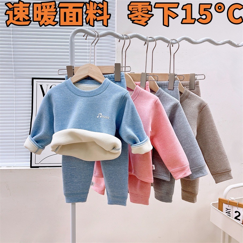 가을과 겨울 시즌 새로운 어린이 기모 진한 따뜻한 뼈없는 세트 소년 소녀 가을 옷 가을 바지 학교 유니폼 유물스토어 가기