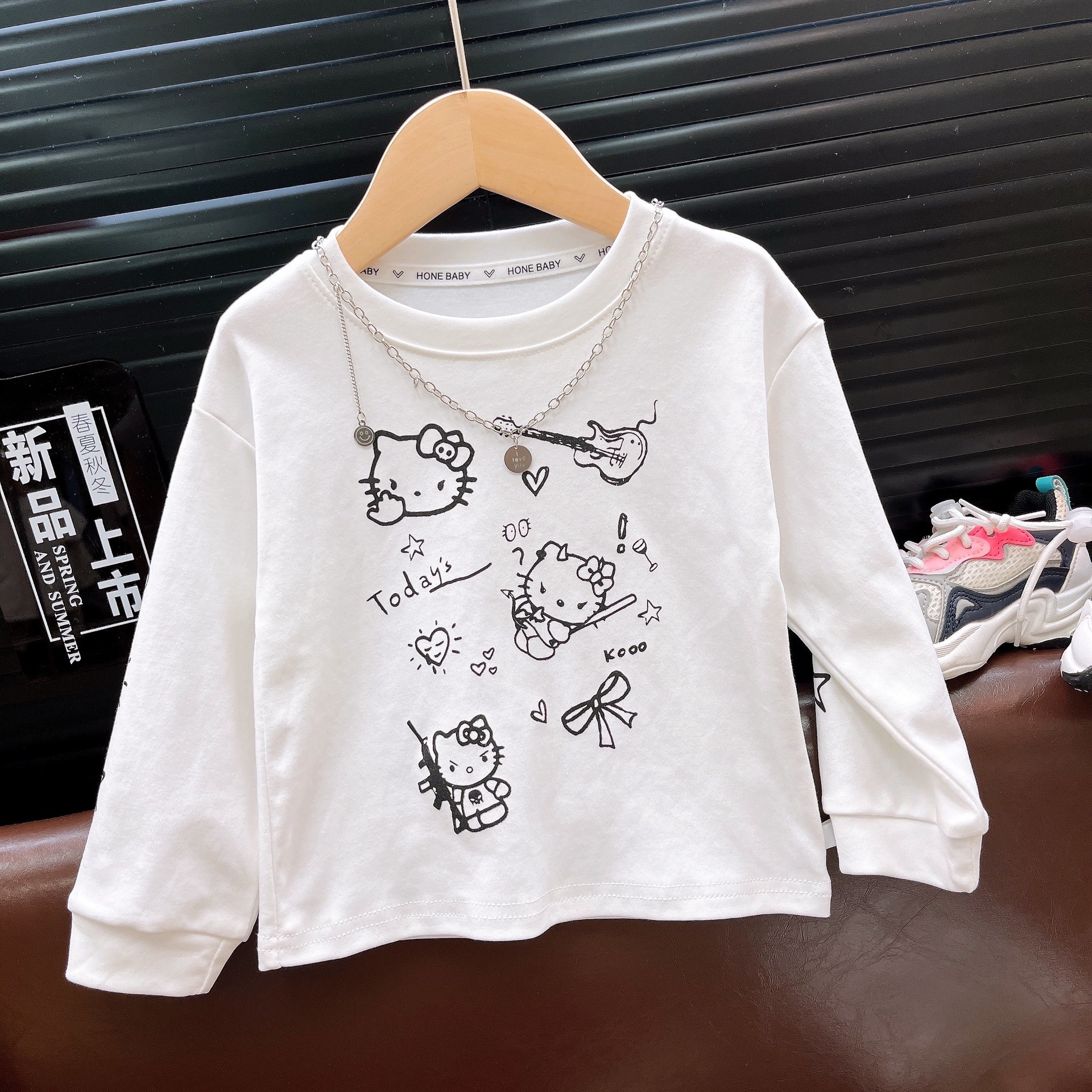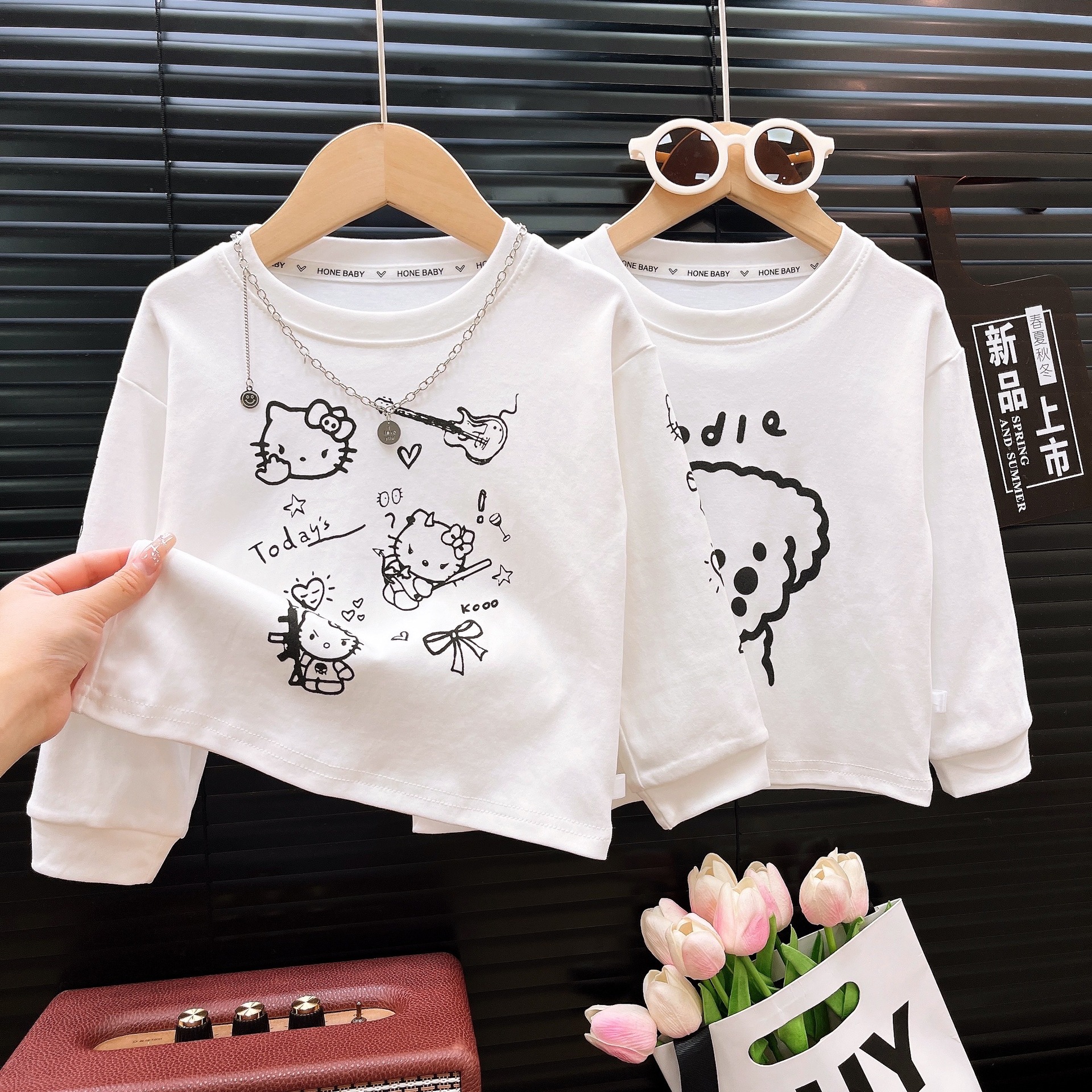하이 퀄리티 코튼 화이트 봄과 가을 아기 트렌디 베이스 셔츠 긴 소매 웨스턴 스타일 코튼 티셔츠 탑스토어 가기