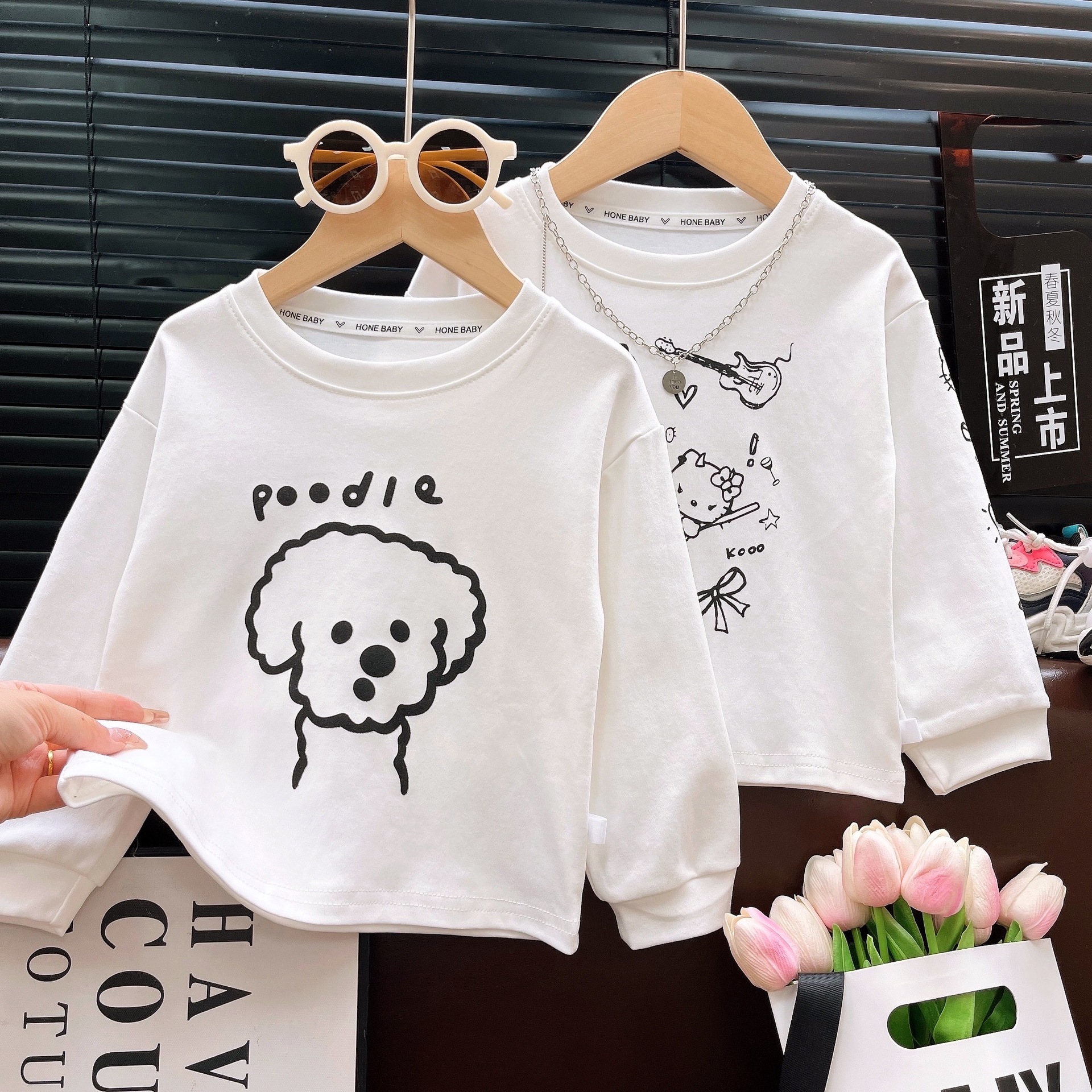 하이 퀄리티 코튼 화이트 봄과 가을 아기 트렌디 베이스 셔츠 긴 소매 웨스턴 스타일 코튼 티셔츠 탑