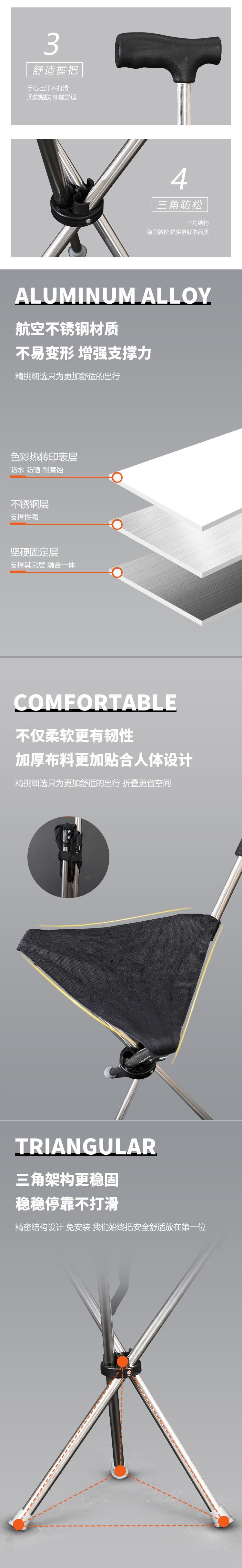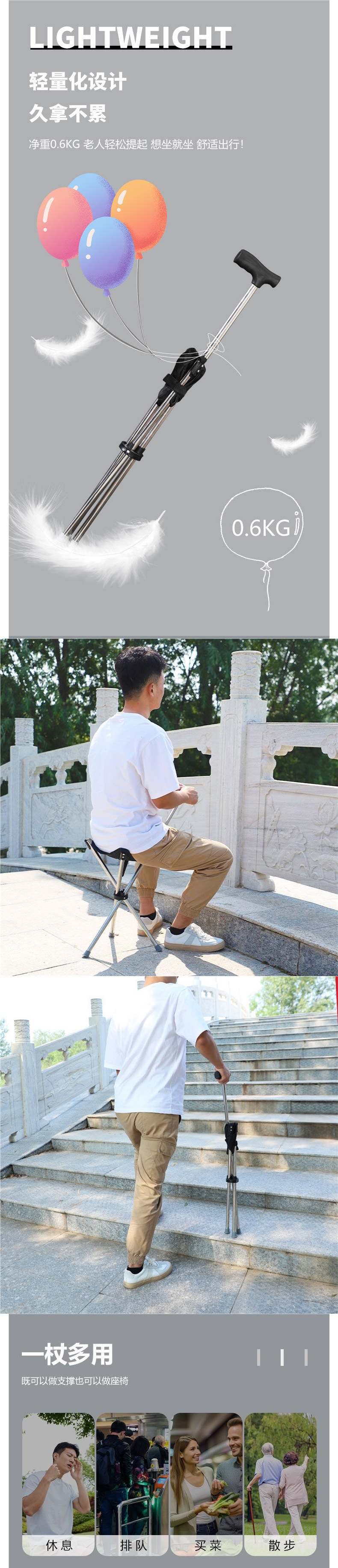 목발 휴대용 의자 미끄럼 방지 휴대용 등반기 스틱 내구성 있는 노인 폴딩 스톨을위한 여행 산책 유물스토어 가기