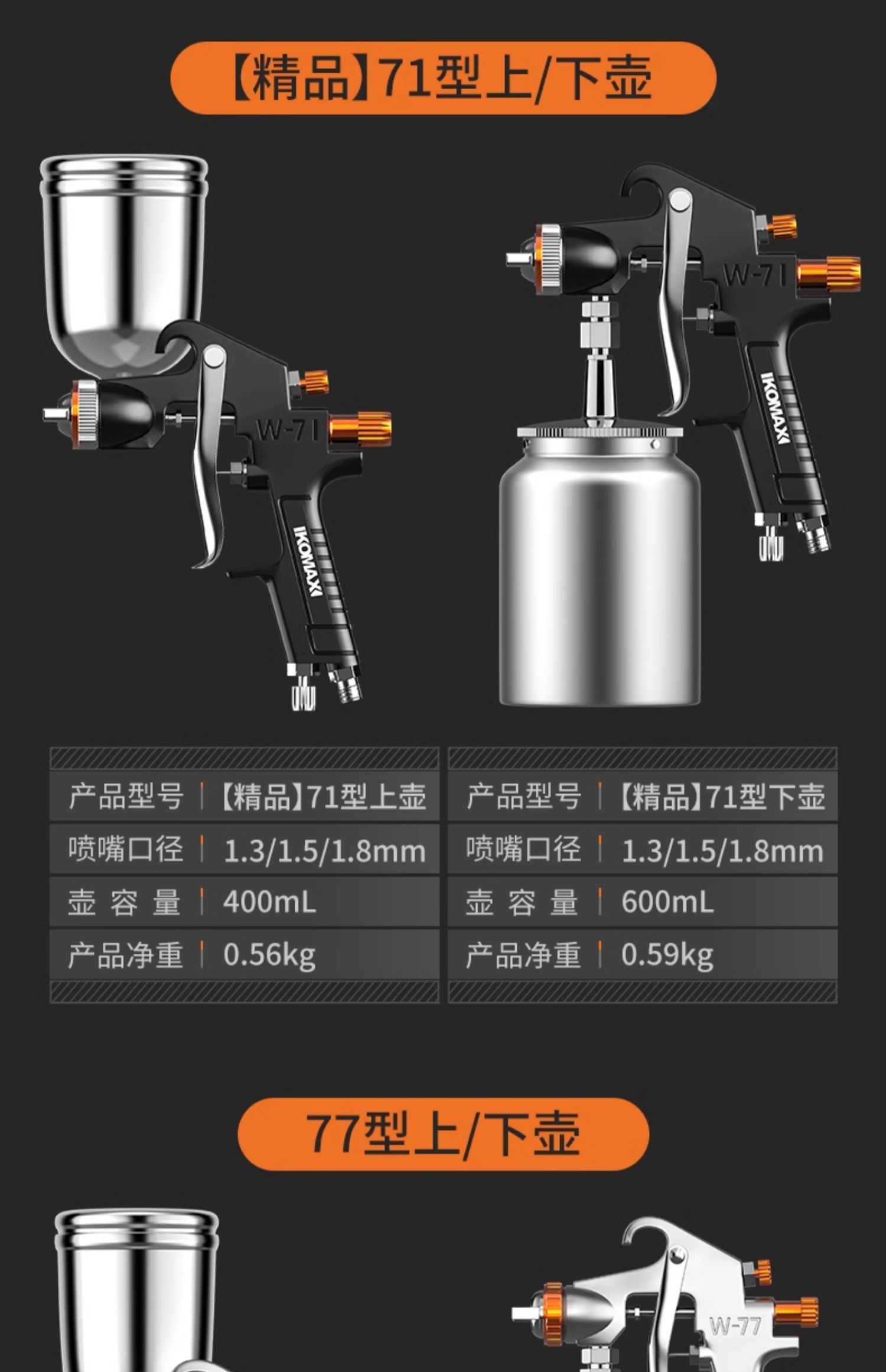 • [프로페셔널 모델] W-77 상부 냄비/3.0 구경 +400ML (미세 분사, 균일 분무)