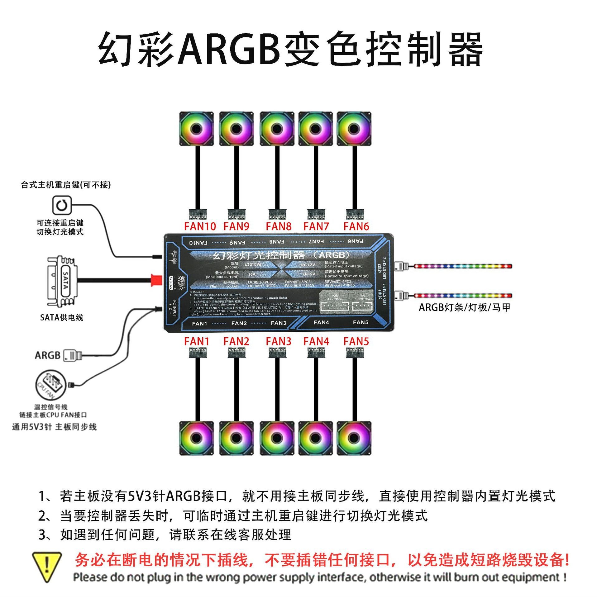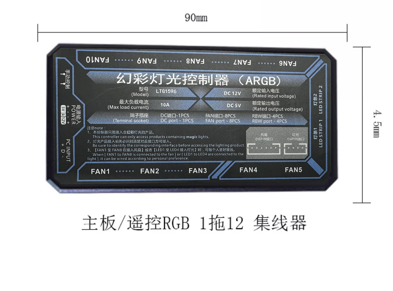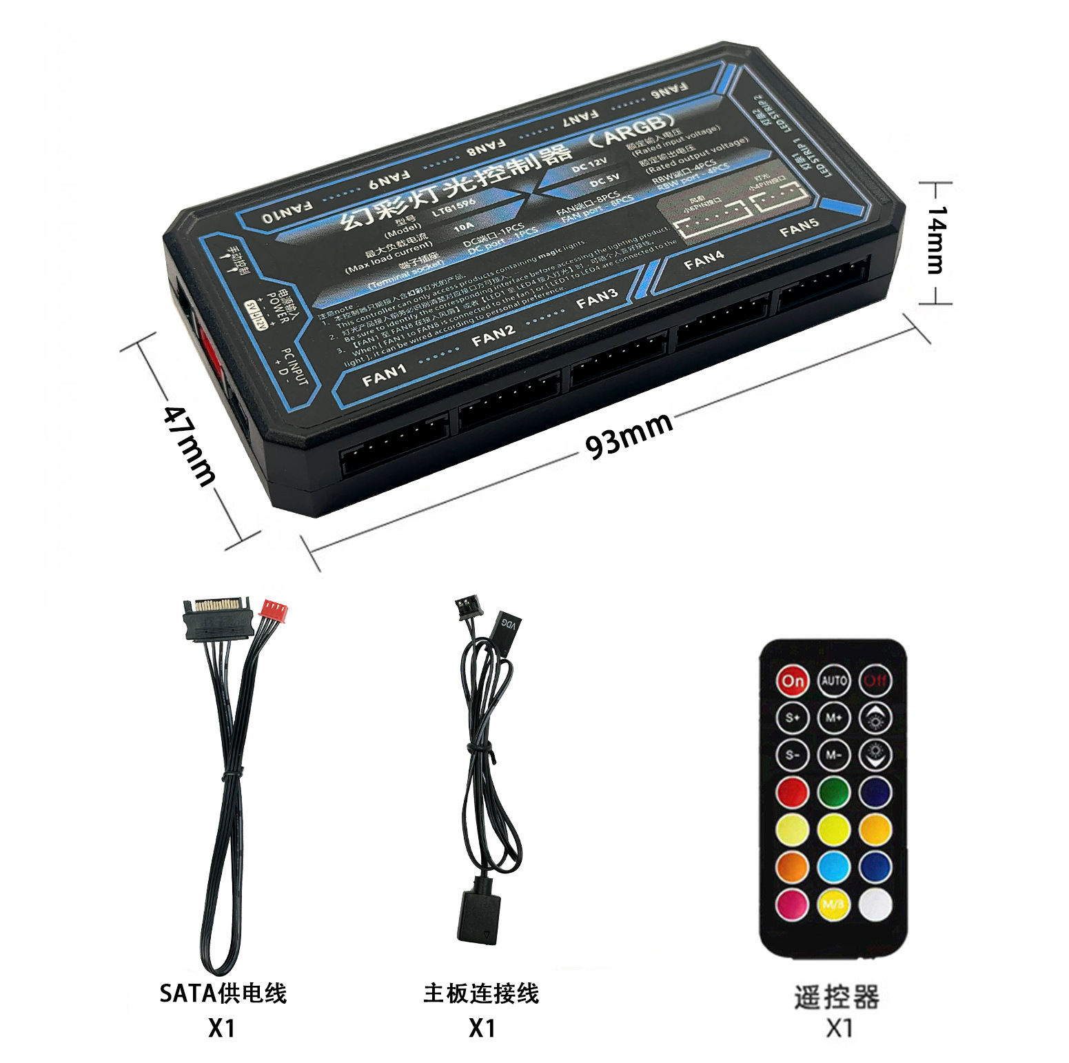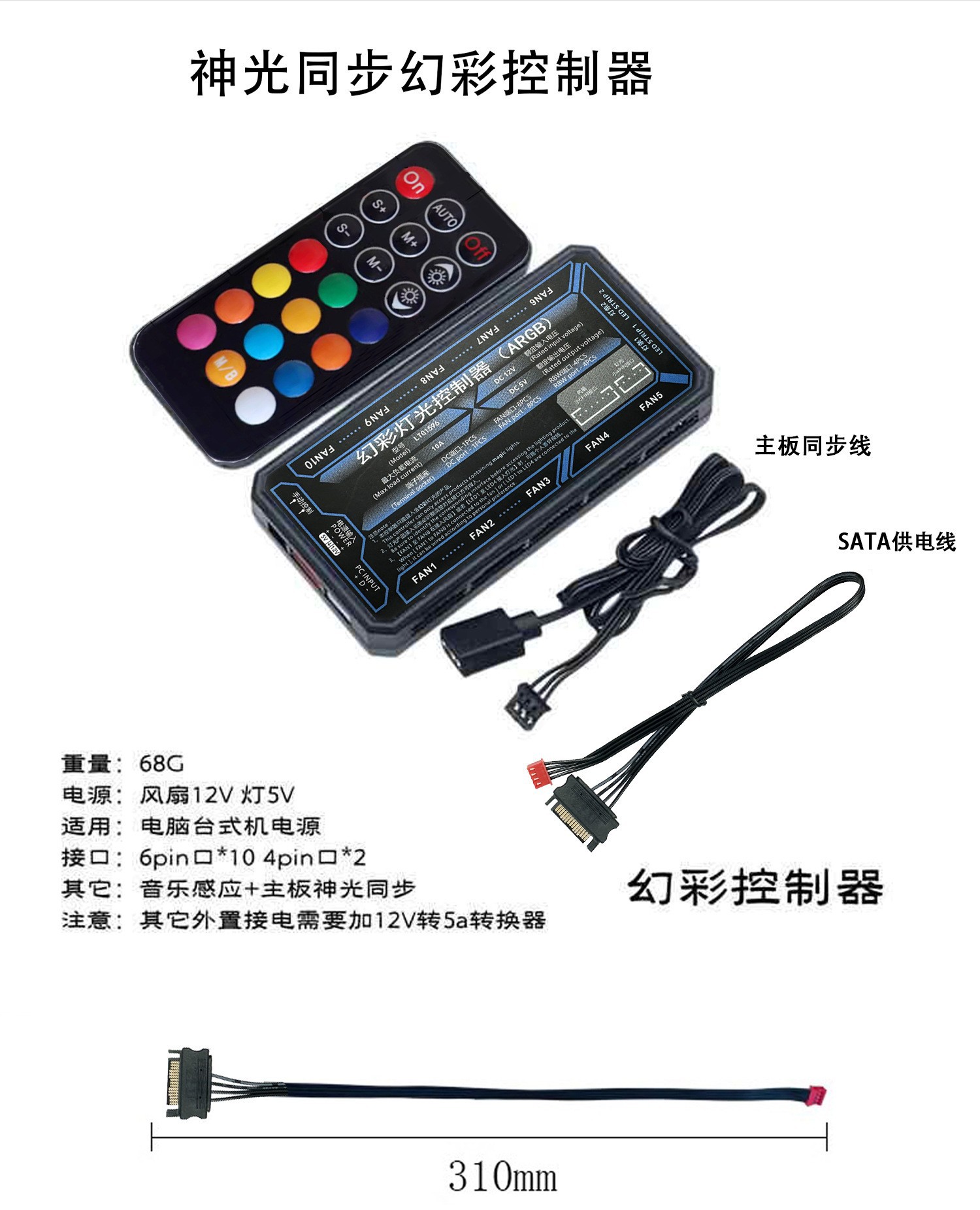 컴퓨터 섀시 팬 argb 허브 매직 라이트 동기화 6pin 인터페이스 10 2 무선 원격 제어 컨트롤러