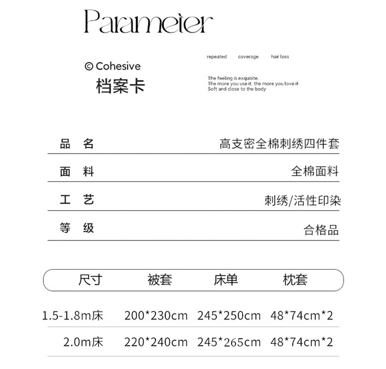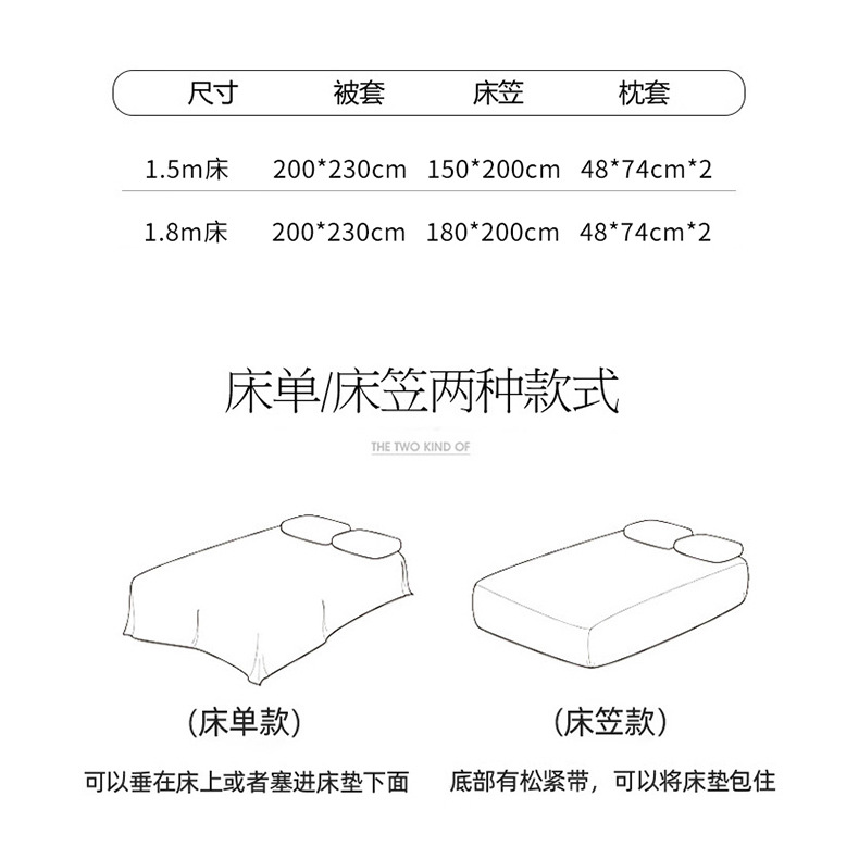 • 1.8m 침대 [시트 4개 세트] - 200x230cm 이불심에 적합
