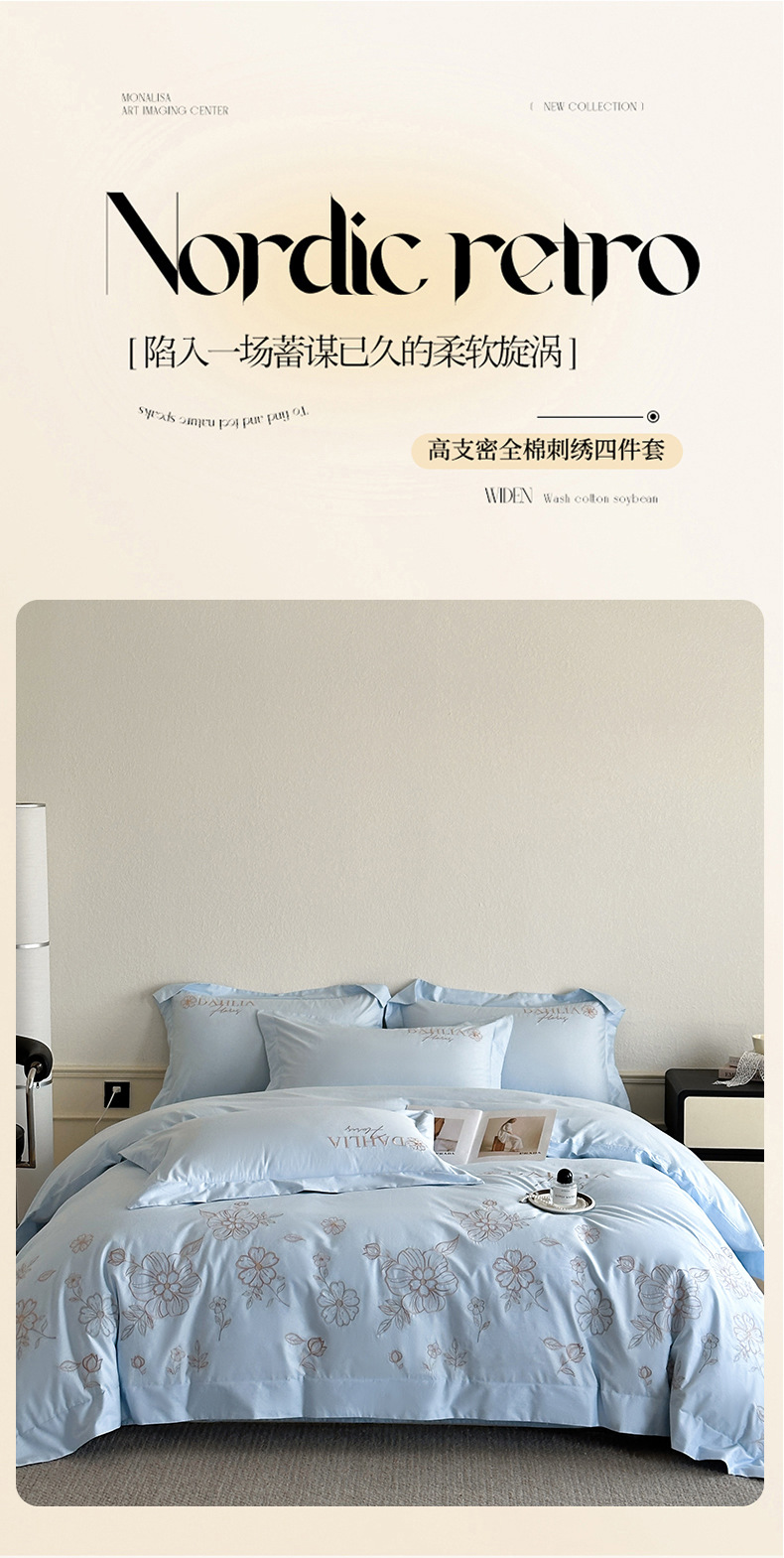 가벼운 럭셔리 신장 긴 스테이플 면화 자수 절묘한 자수 공예 4 피스 세트 퓨어 코튼 표준 침대 시트 퀼트 커버스토어 가기