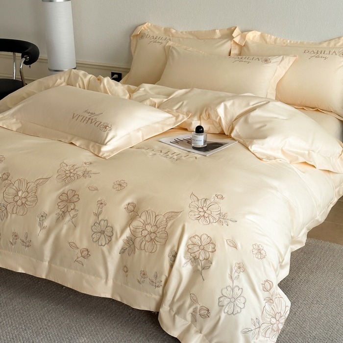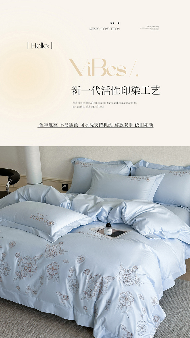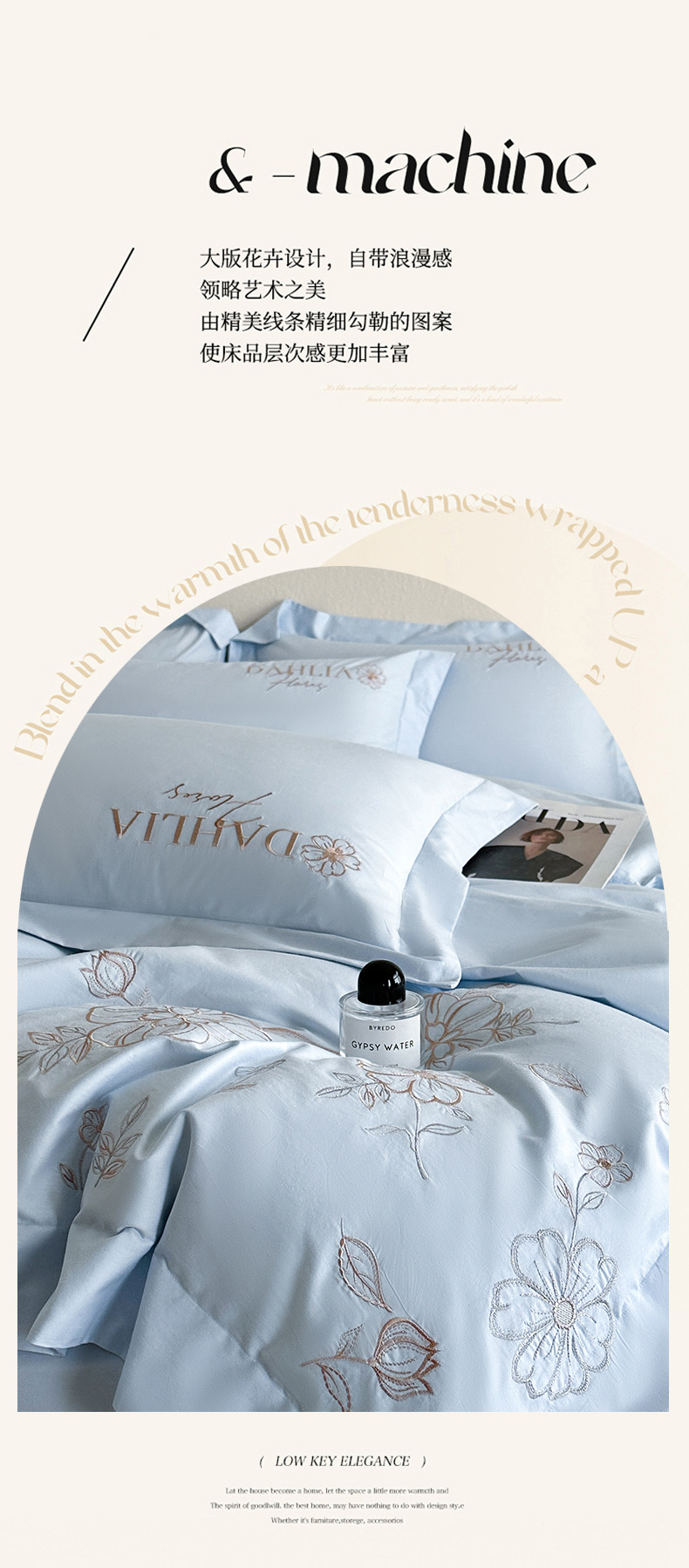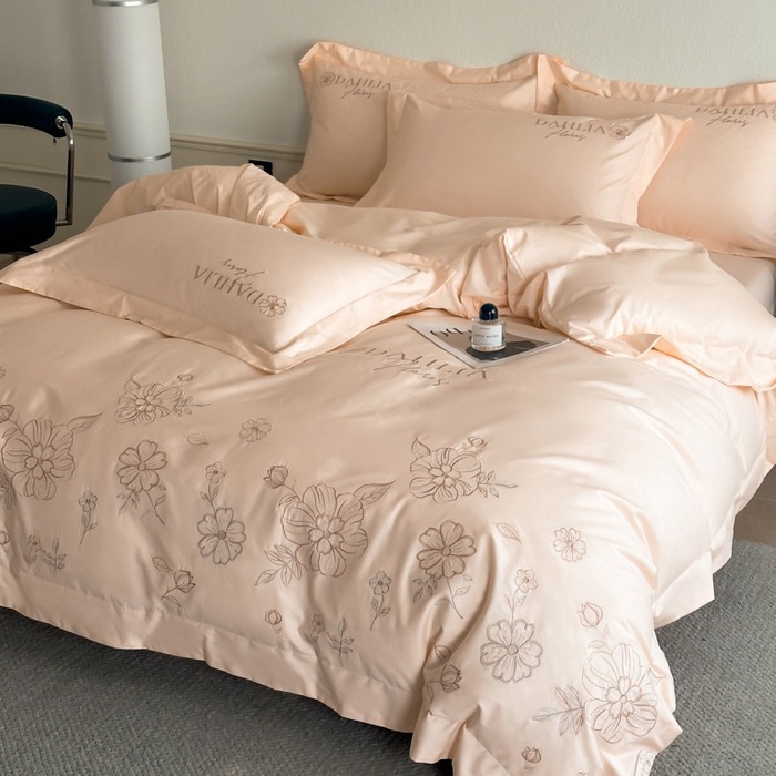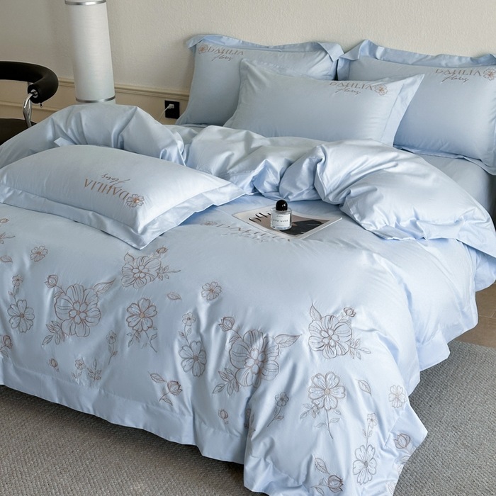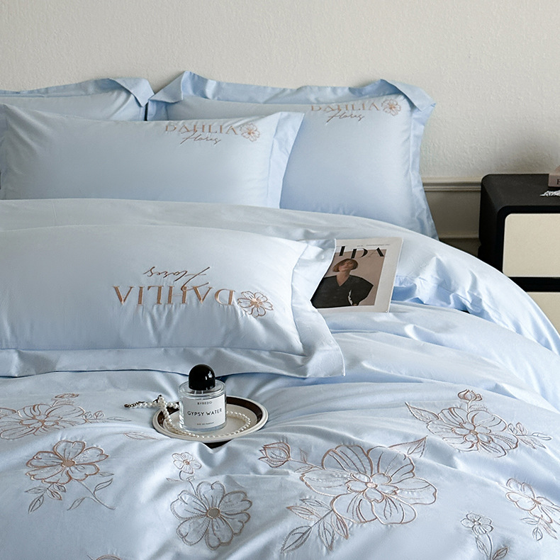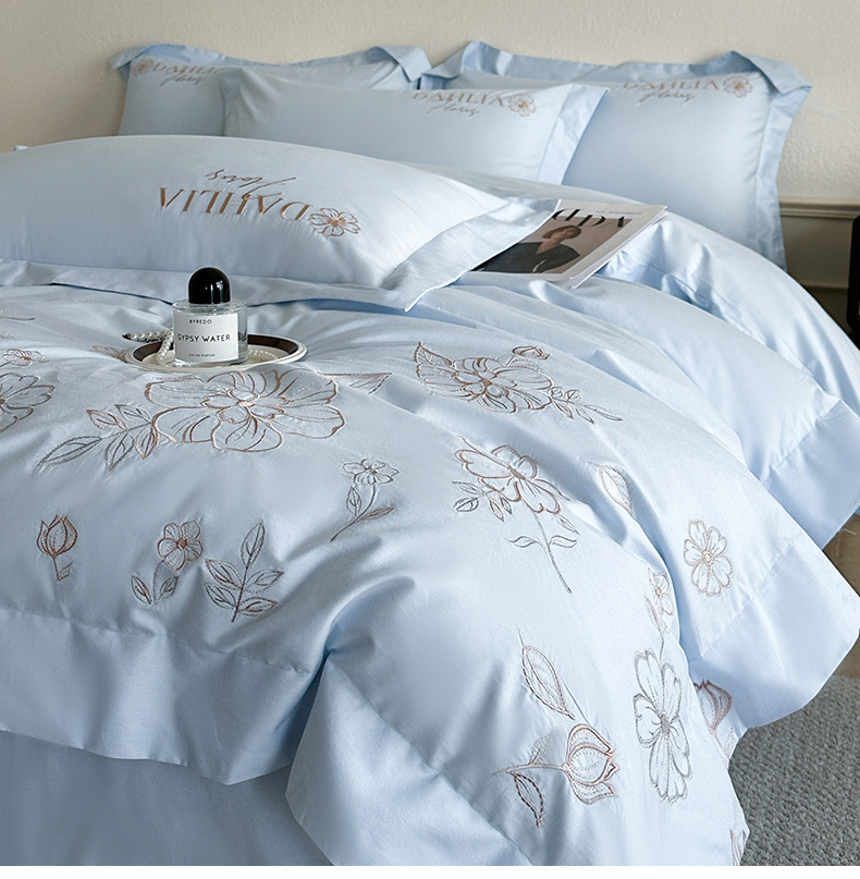 가벼운 럭셔리 신장 긴 스테이플 면화 자수 절묘한 자수 공예 4 피스 세트 퓨어 코튼 표준 침대 시트 퀼트 커버