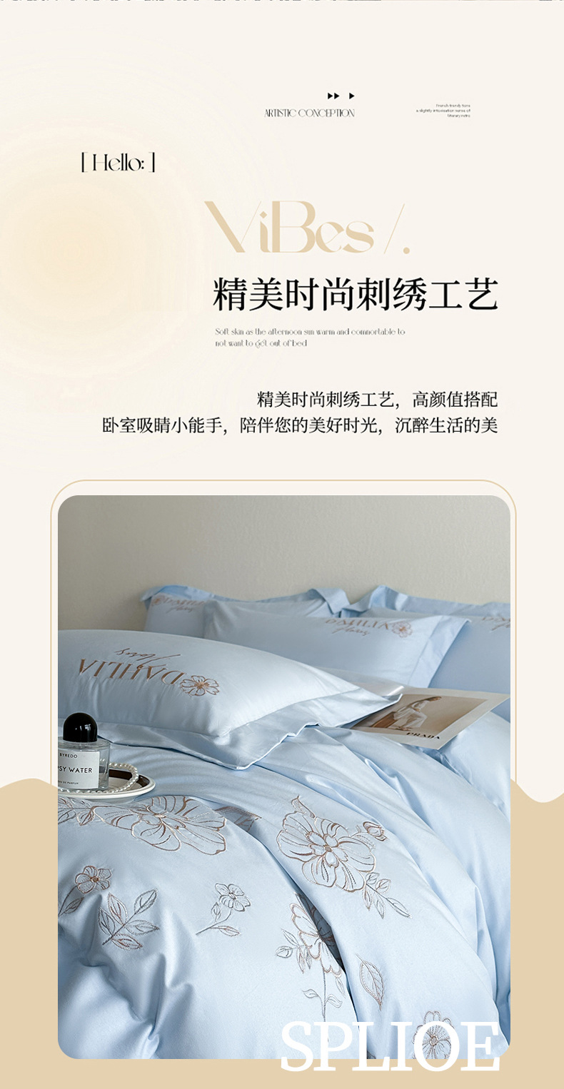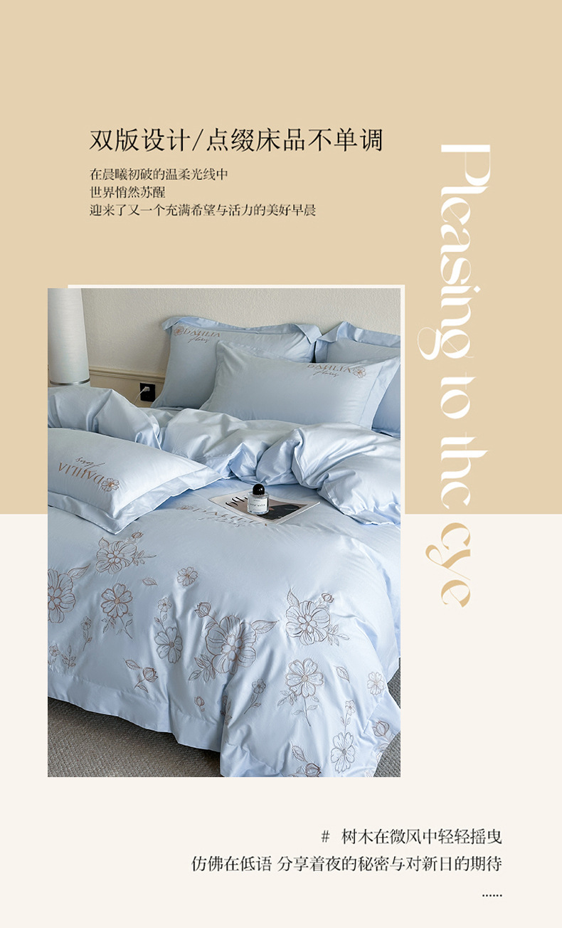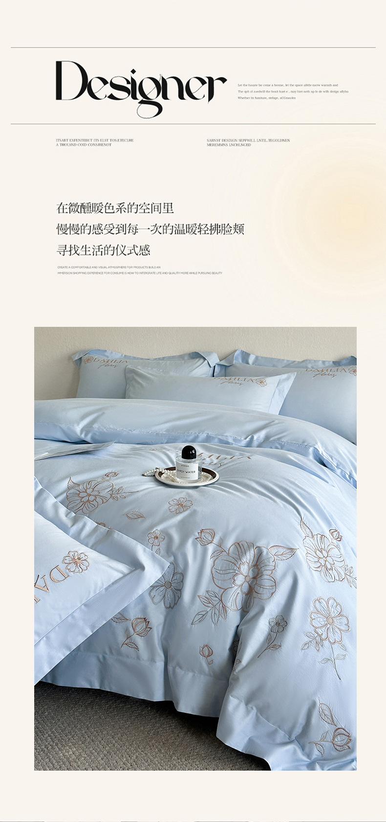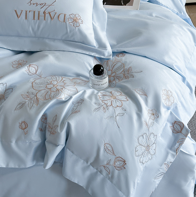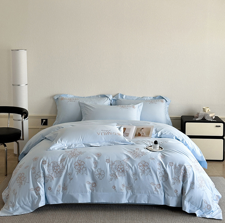 가벼운 럭셔리 신장 긴 스테이플 면화 자수 절묘한 자수 공예 4 피스 세트 퓨어 코튼 표준 침대 시트 퀼트 커버