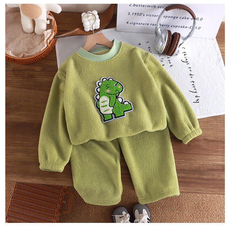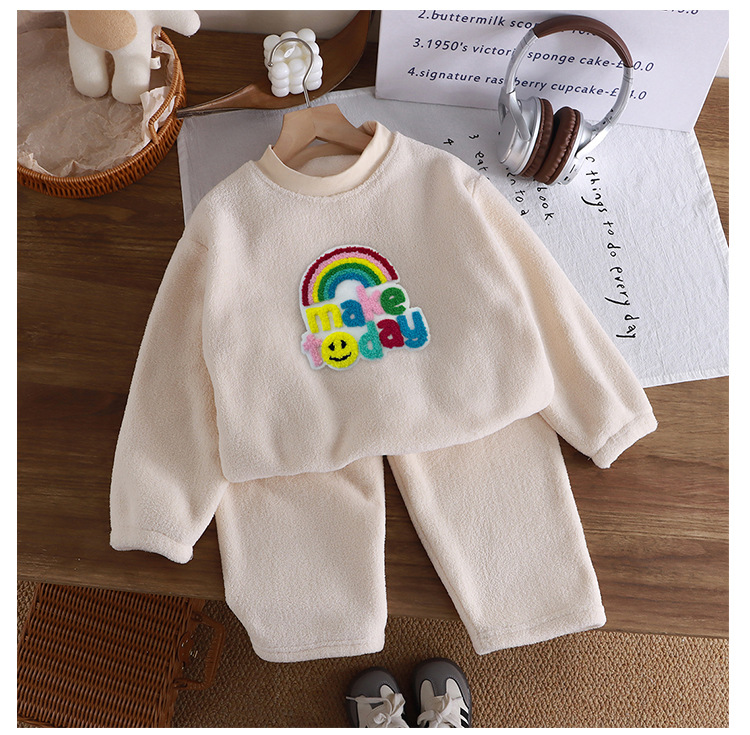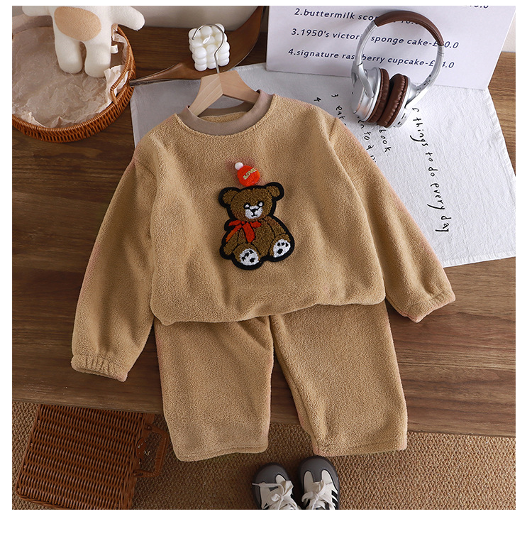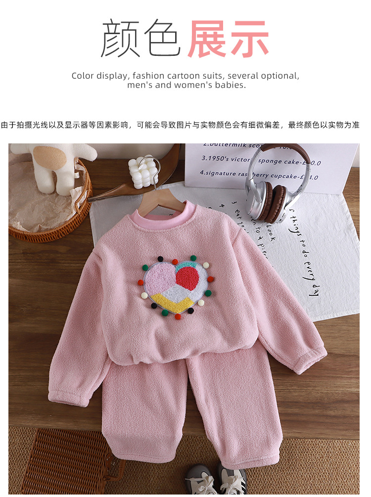 가을/겨울 새 기모 패딩 된 어린이 잠옷 소년 소녀를위한 한국어 버전의 따뜻한 가정 옷은 한 세대의 아동복을 세트.스토어 가기