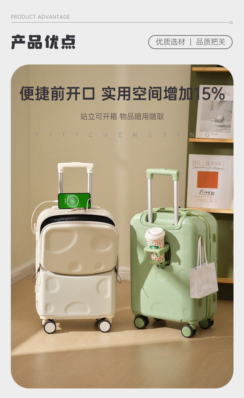 새로운 치즈 프론트 오프닝 다기능 트롤리 케이스 유니버설 휠 가방 작은 ryh스토어 가기