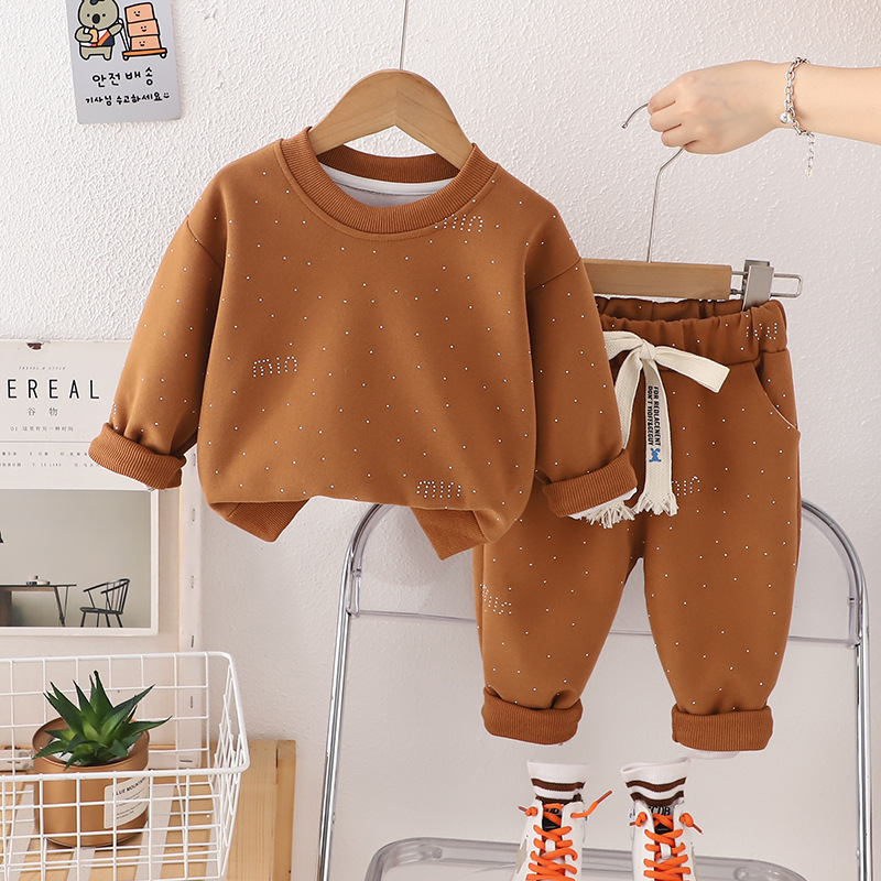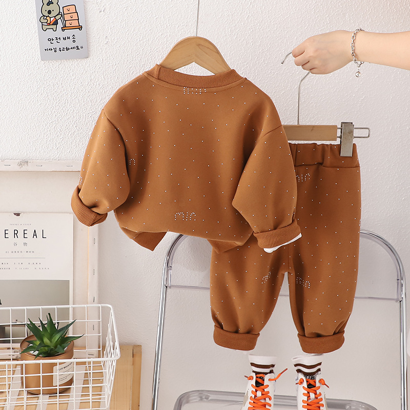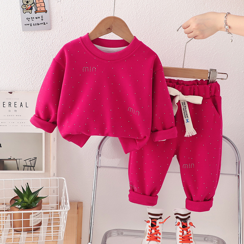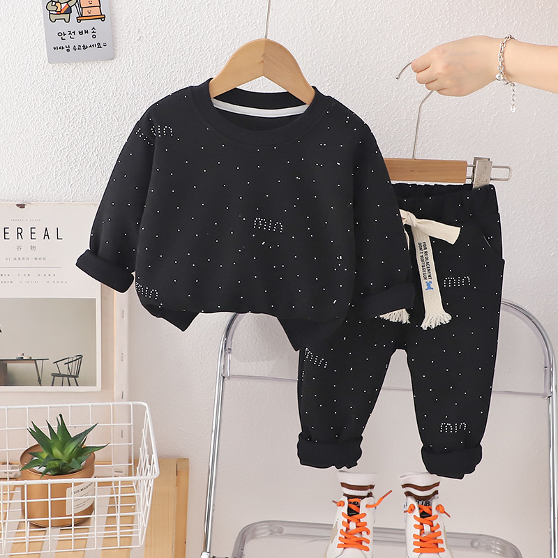 봄과 가을 새로운 MIU 다이아몬드가 박힌 스웨터 2 피스 세트 소년 소녀 아기 패션 세트 공장 직접 세대 어린이 의류 조수