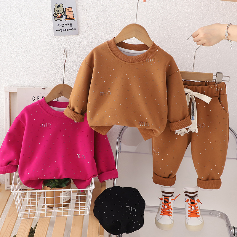 봄과 가을 새로운 MIU 다이아몬드가 박힌 스웨터 2 피스 세트 소년 소녀 아기 패션 세트 공장 직접 세대 어린이 의류 조수스토어 가기