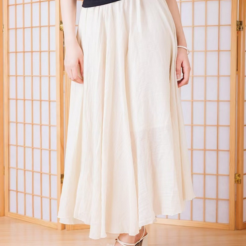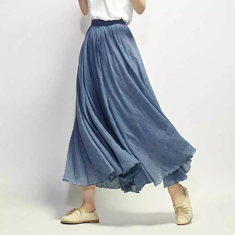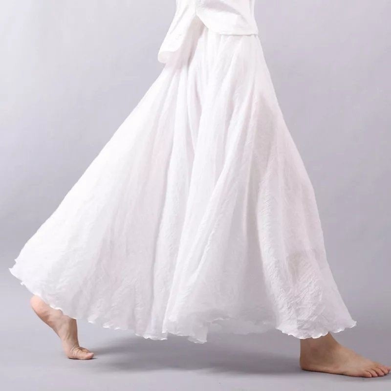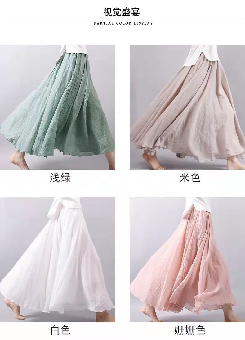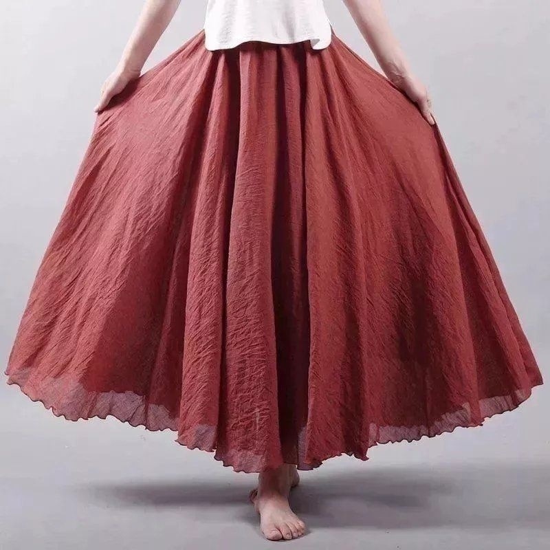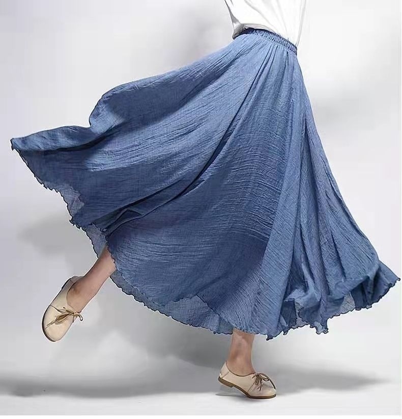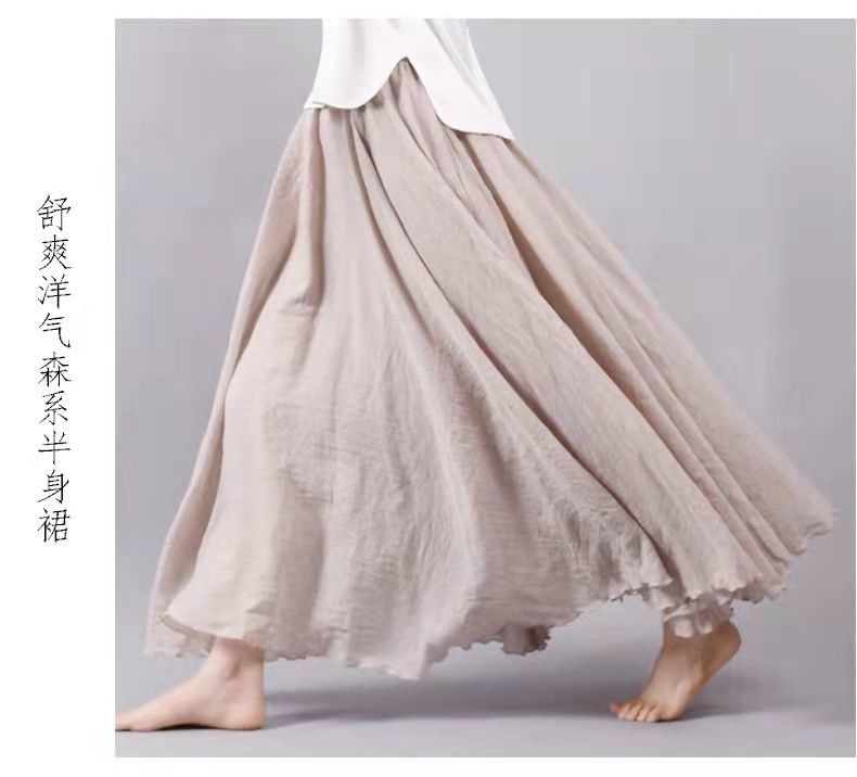 더블 코튼 리넨 스커트 여성 여름 선 스타일 여성용 리넨 스커트 플러스 사이즈 요정 펄럭이는 요정 스커트 롱 스커트스토어 가기