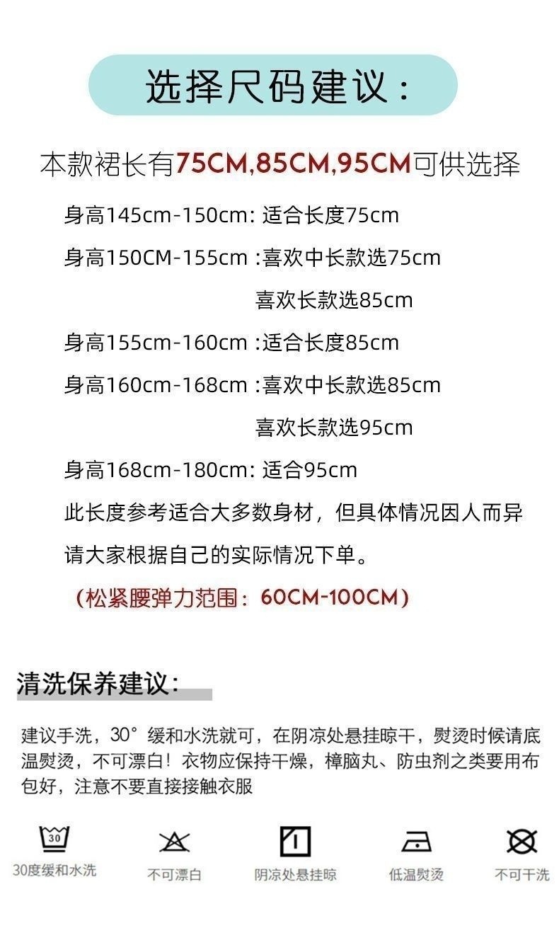 • 스커트 길이 95cm (이중 안티 시스루 신축성 있는 허리)