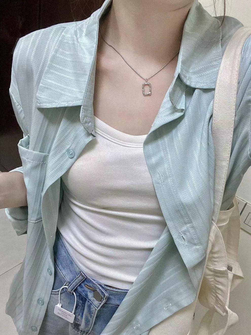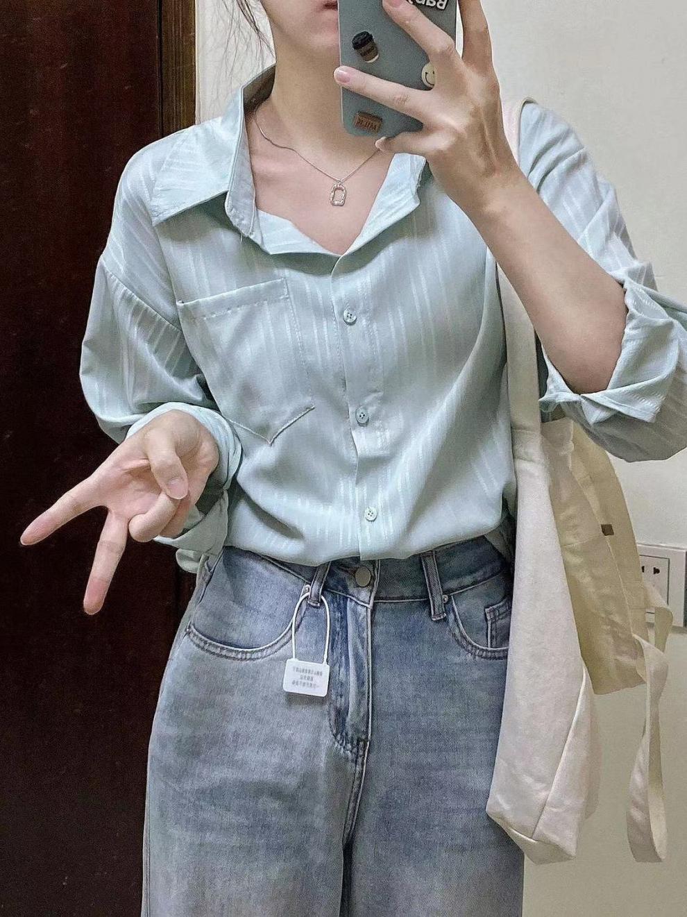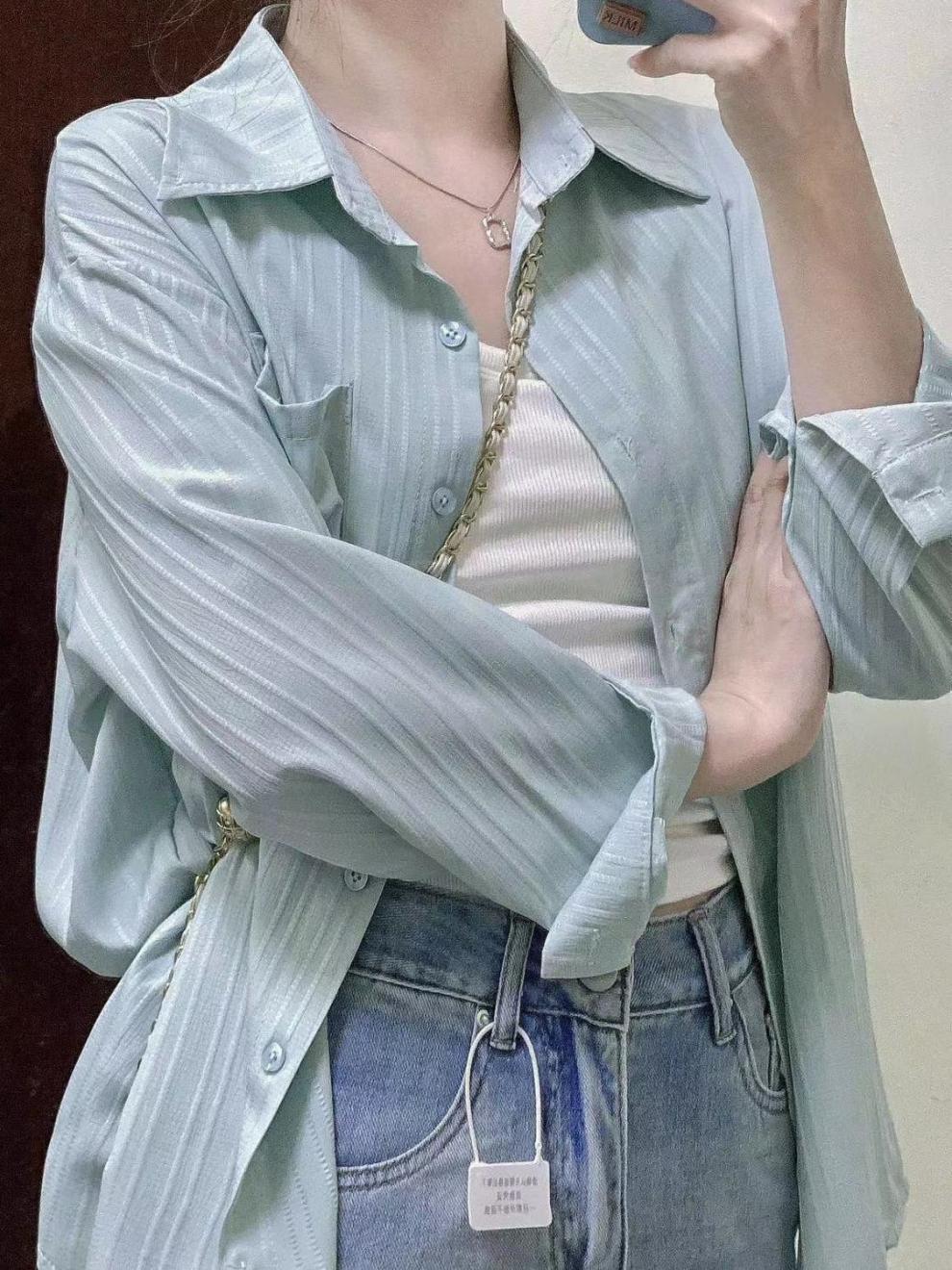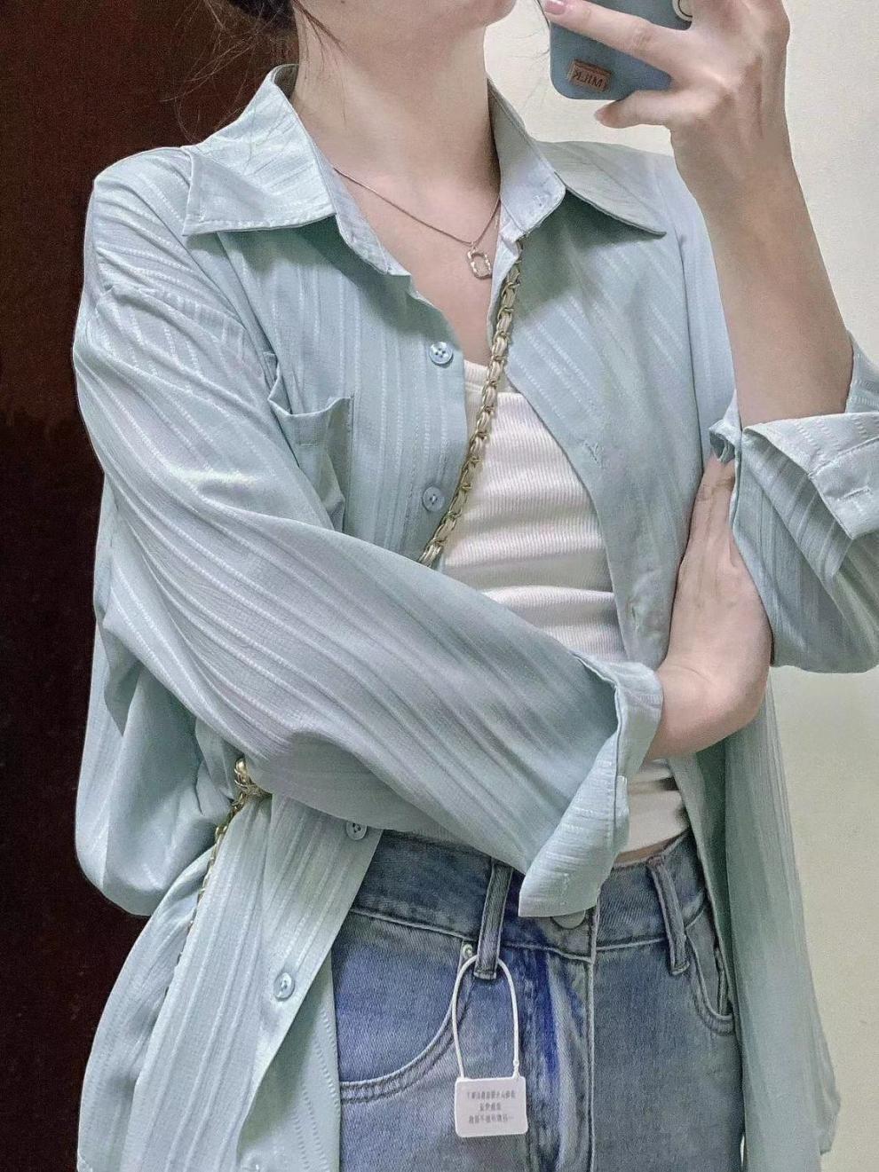 2024 여름 얇은 한국 스타일 셔츠 여성 틈새 디자인 센스 느슨한 올 매치 슬리밍 셔츠 외부 착용 태양 보호 카디건스토어 가기