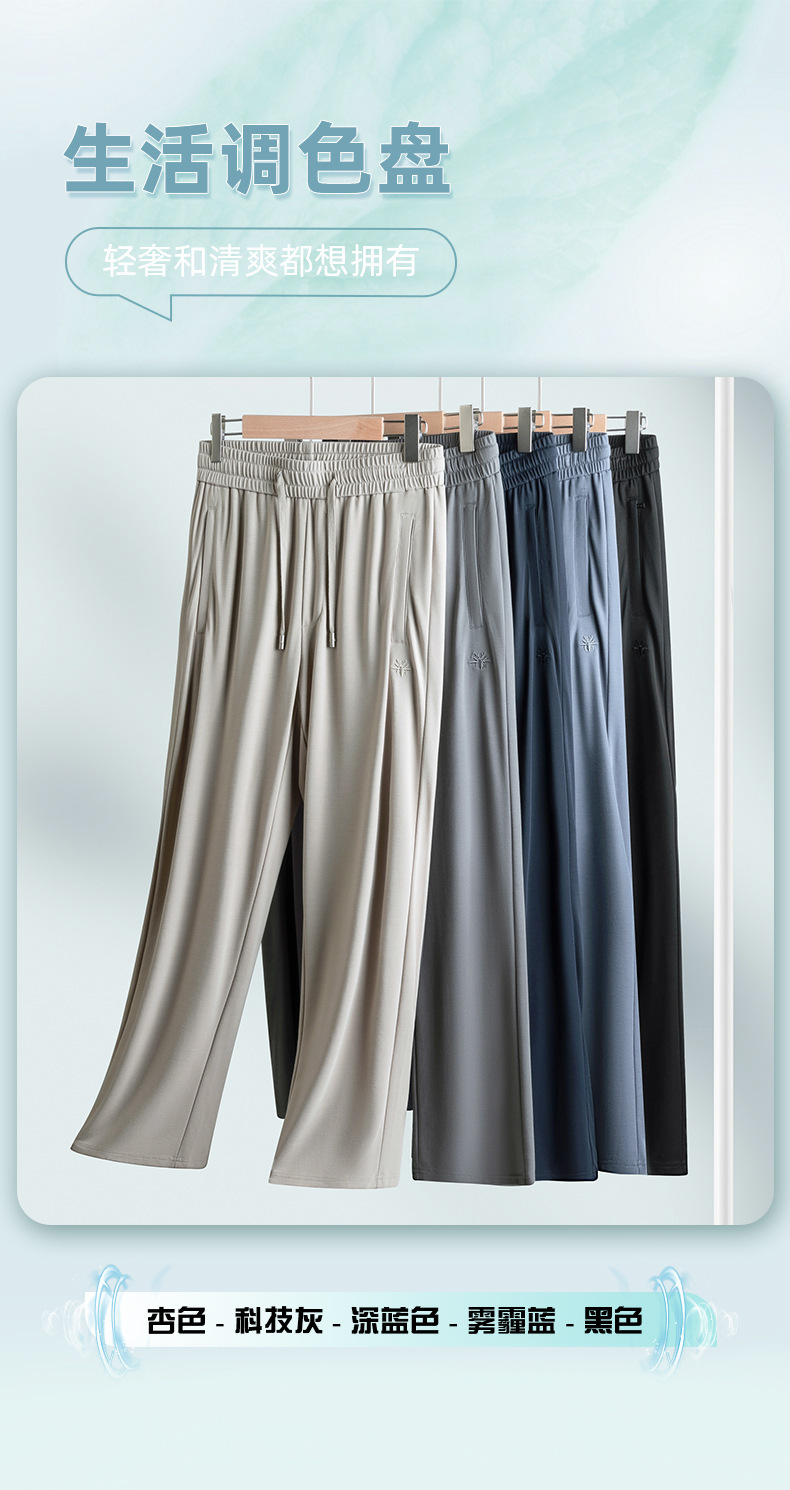 여름 얇은 와이드 레그 바지 남자 느슨한 뽕나무 실크 바지 중년 남자 스포츠 바지 봄 아빠의 캐주얼 바지스토어 가기