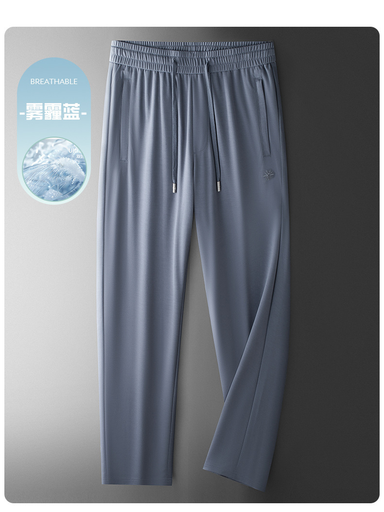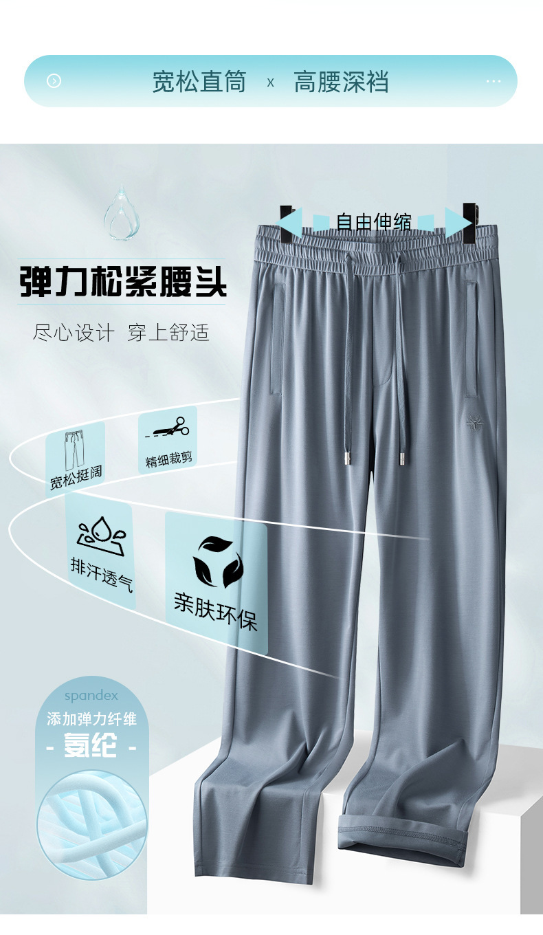 여름 얇은 와이드 레그 바지 남자 느슨한 뽕나무 실크 바지 중년 남자 스포츠 바지 봄 아빠의 캐주얼 바지