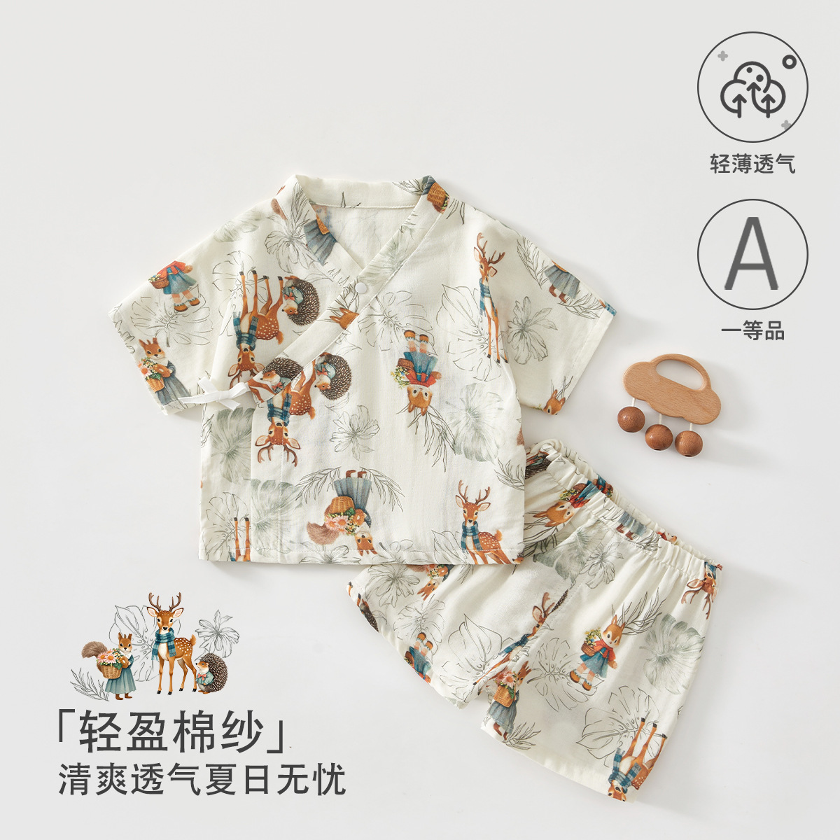 아기옷 A급 면사 분리형 세트 여름 반팔 아기옷 얇은 에어컨 옷 안양 유아복