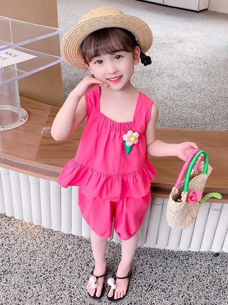 [세트] 여자 세트 투피스 세트 유행 외국식 프라이 거리 여름 고급 어린이 면화 등스토어 가기