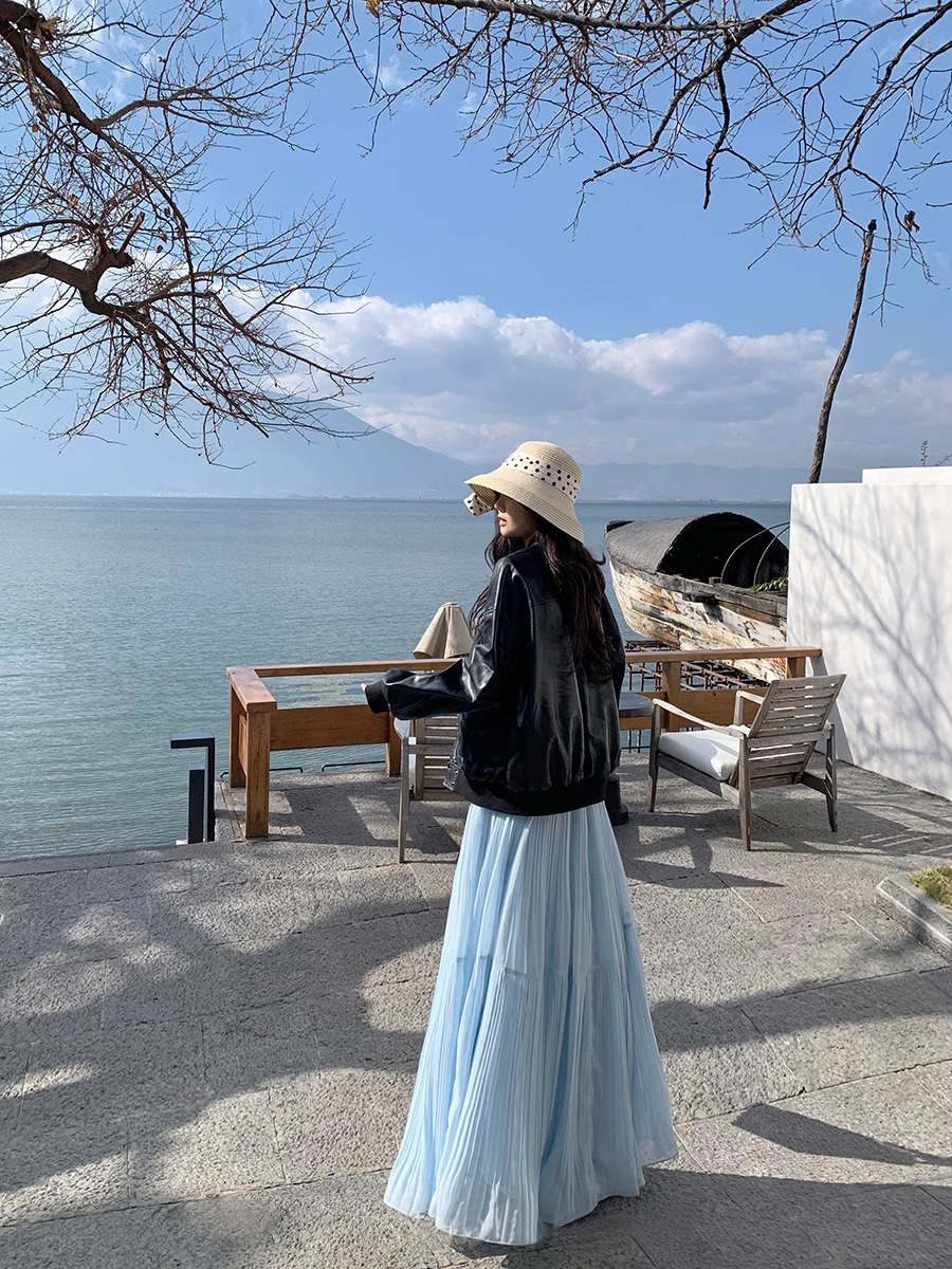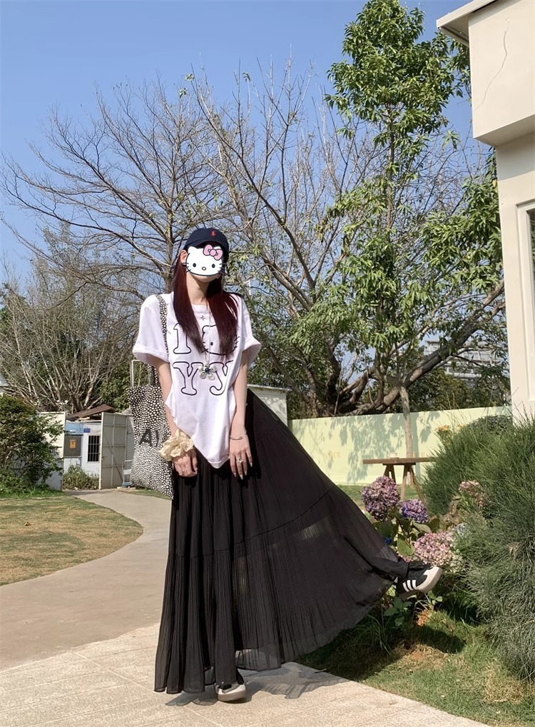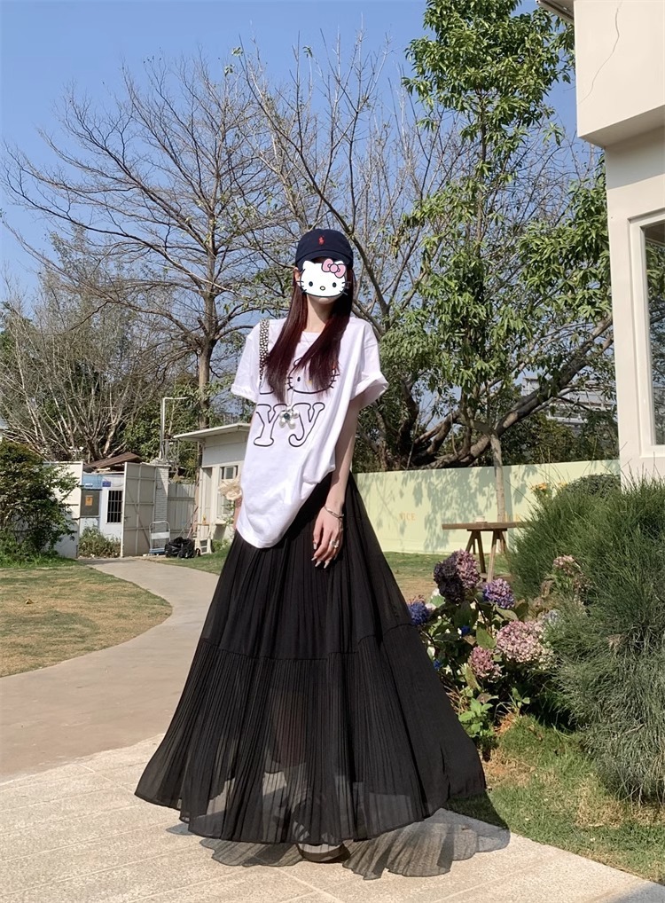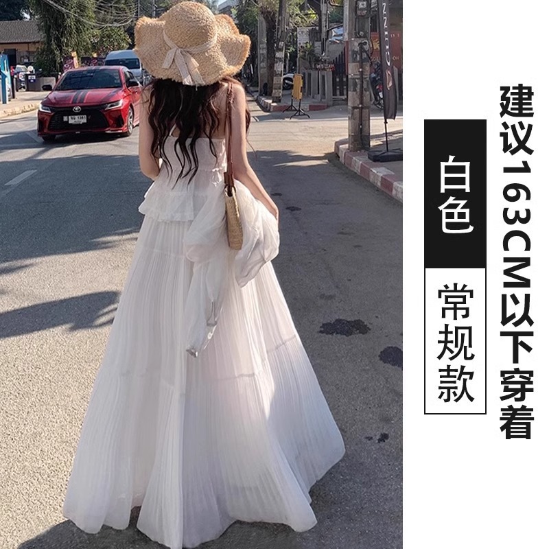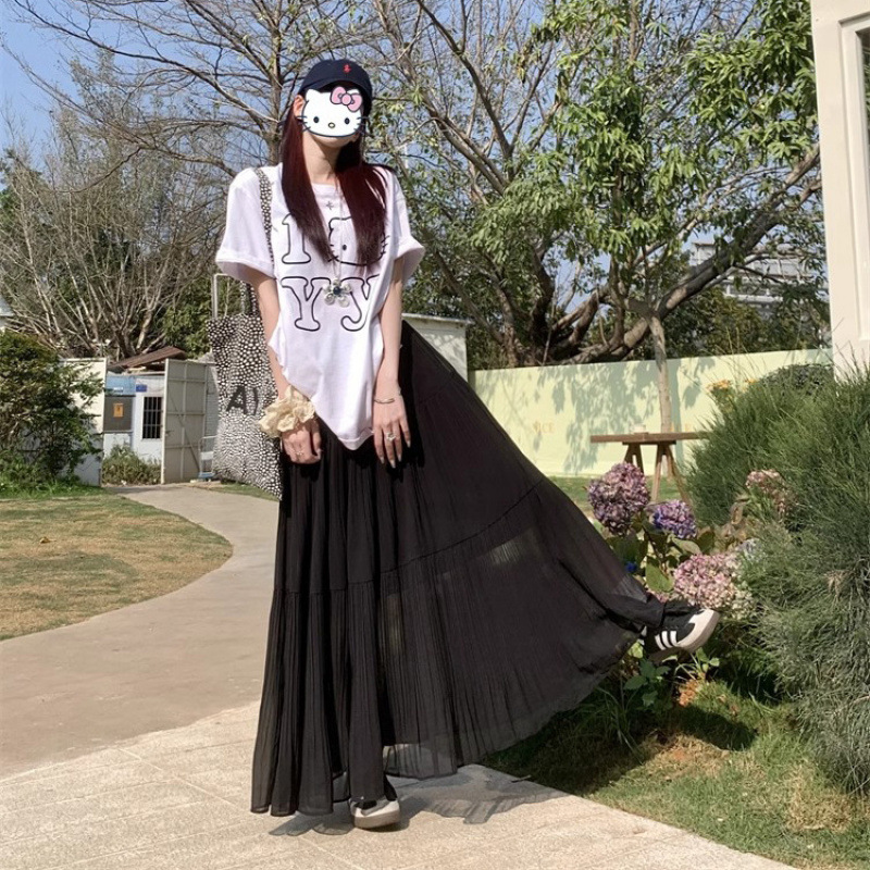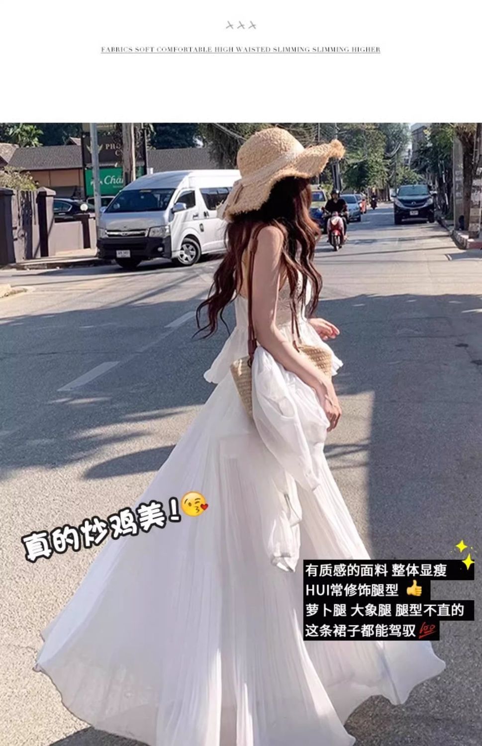 화이트 쉬폰 스커트 여자 봄과 여름 2025 새로운 높은 허리 슬리밍 A 라인 올 매치 주름 케이크 스커트 롱 스커트스토어 가기