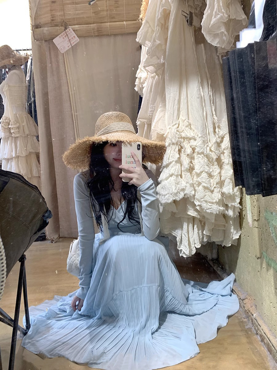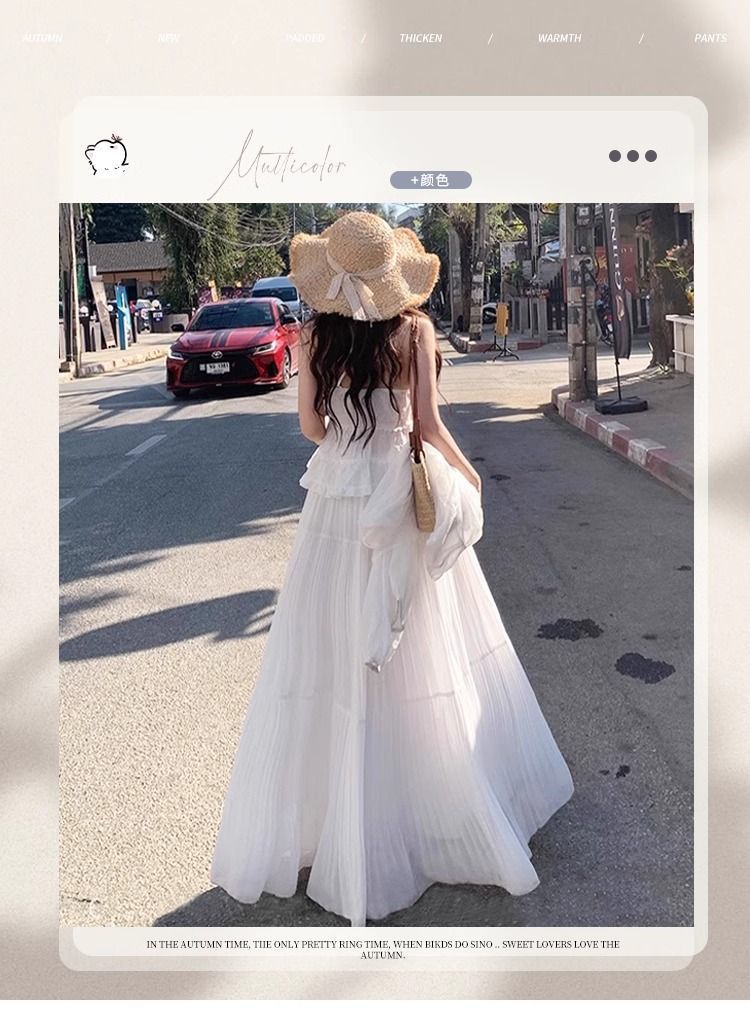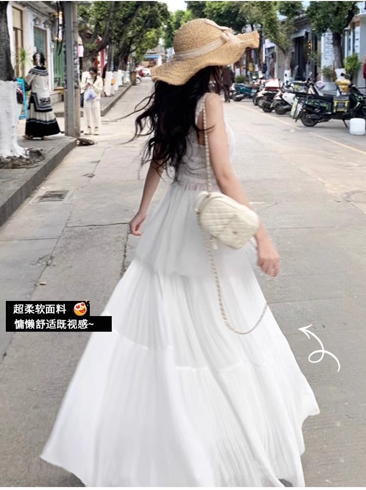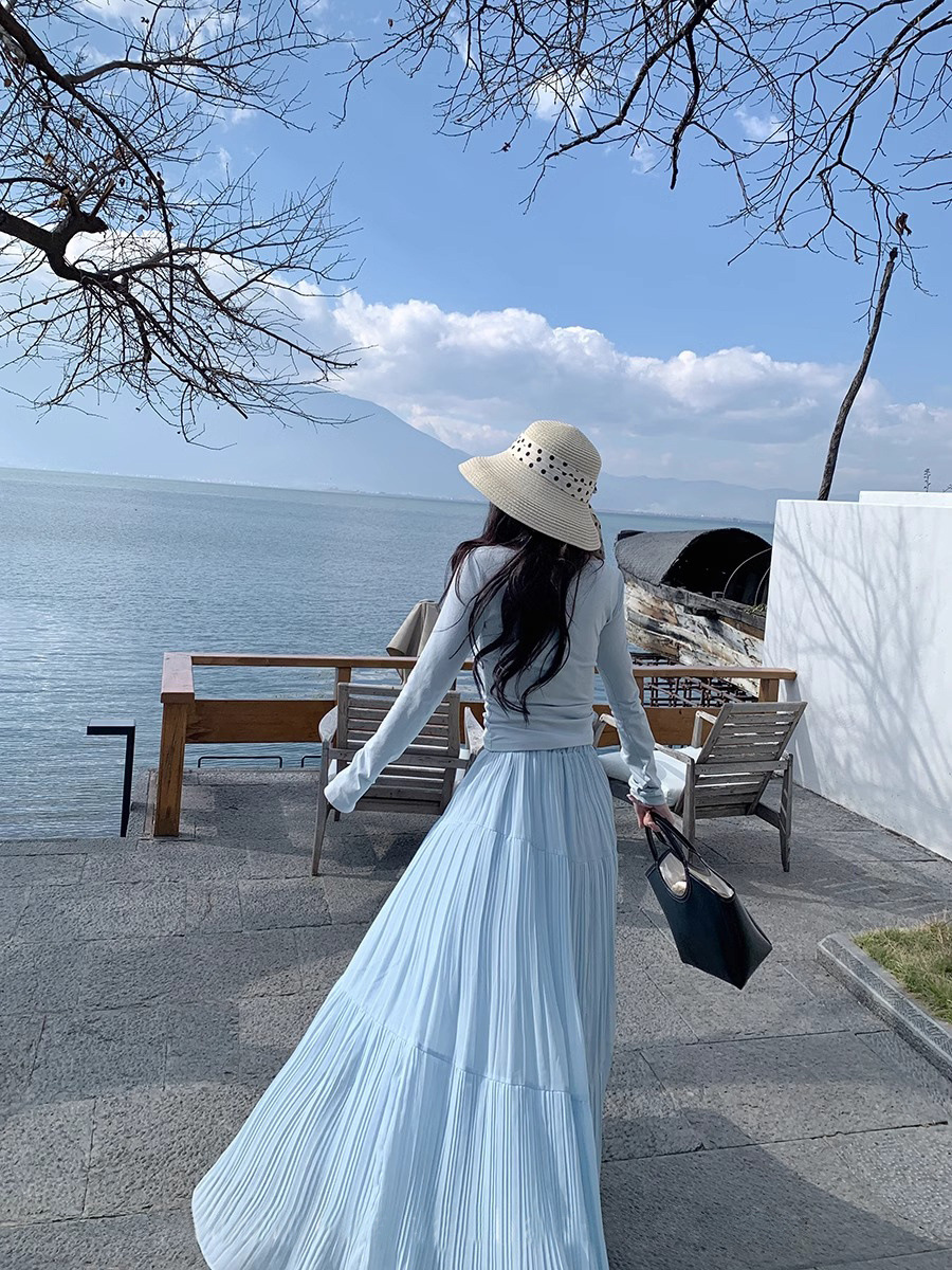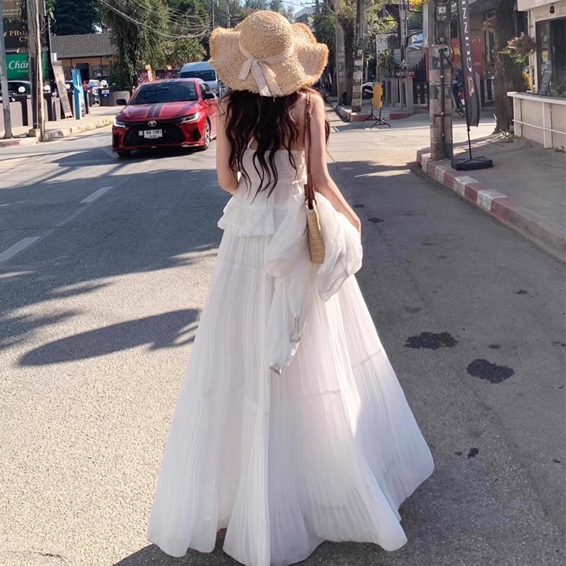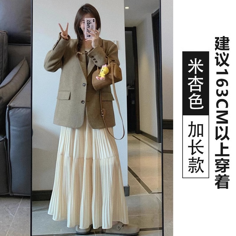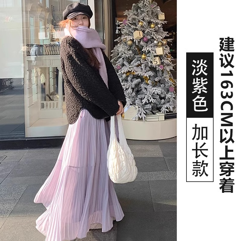 화이트 쉬폰 스커트 여자 봄과 여름 2025 새로운 높은 허리 슬리밍 A 라인 올 매치 주름 케이크 스커트 롱 스커트스토어 가기