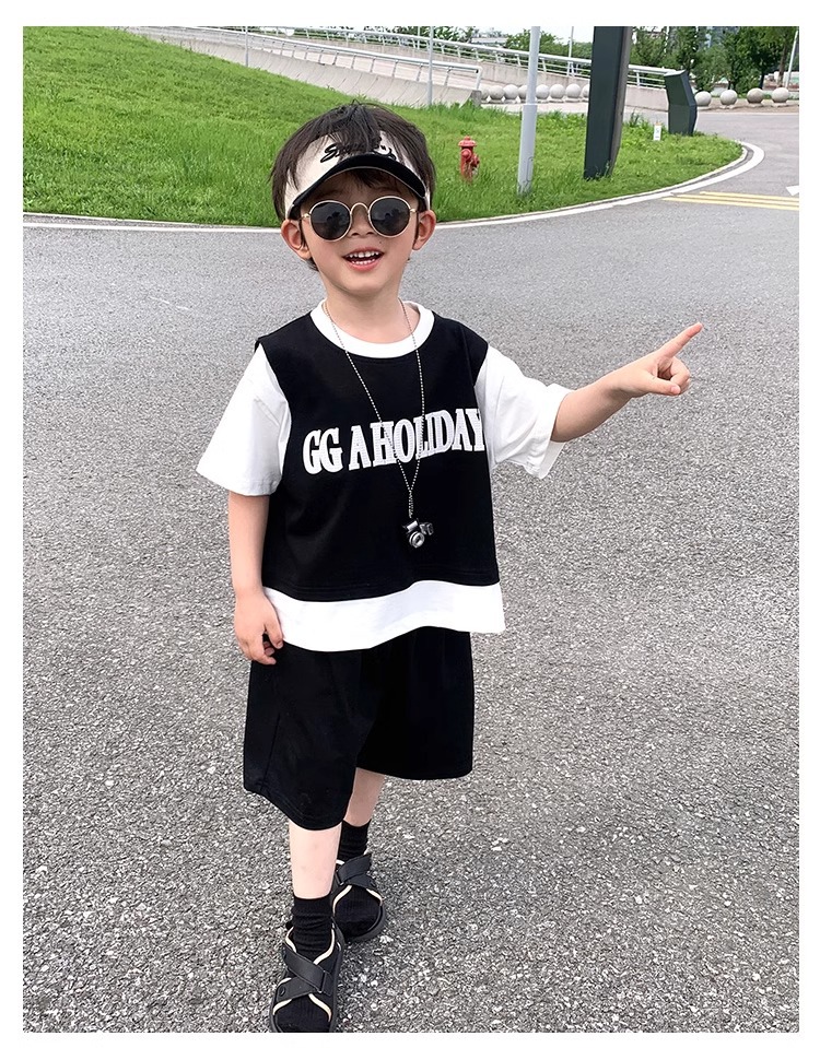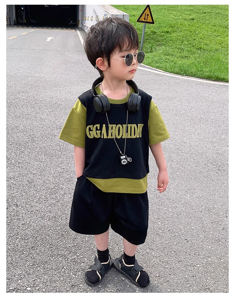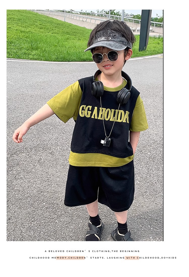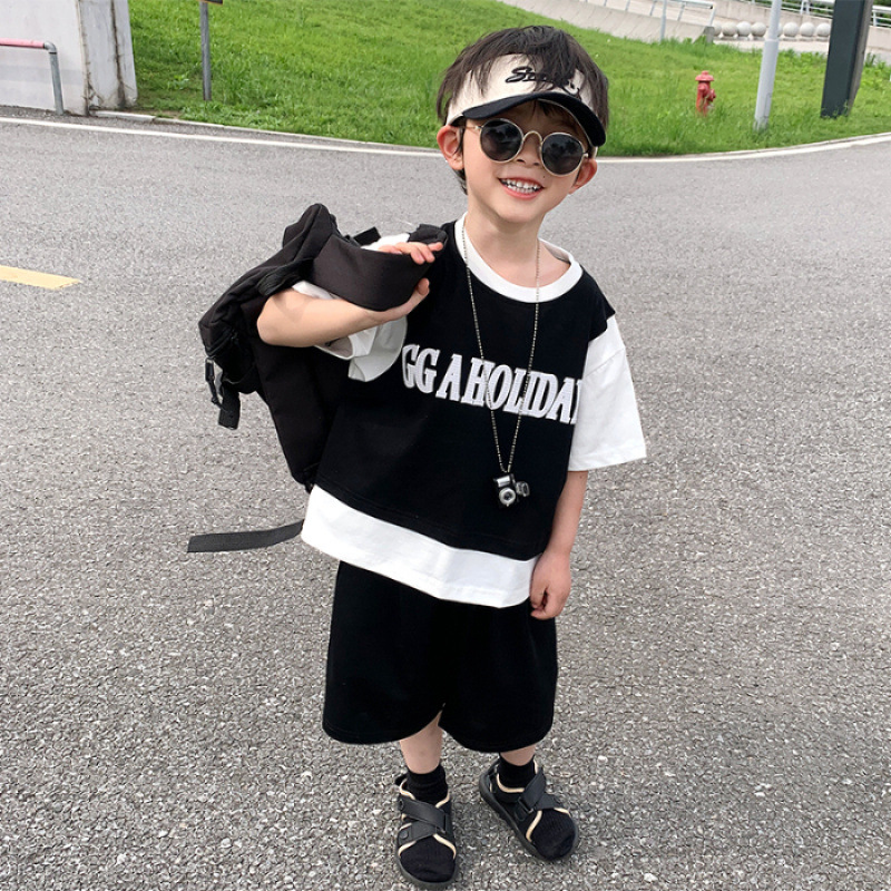 소년 여름 옷 어린이 반팔 세트 패션 세련된 한국 스타일 아기의 여름 옷 소년의 투피스 세트