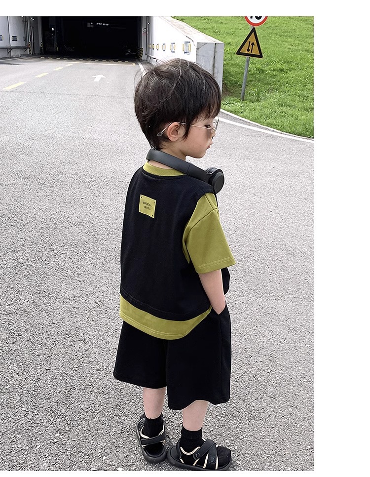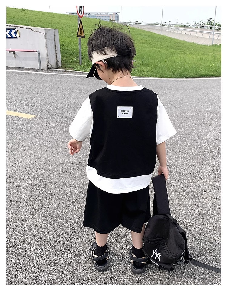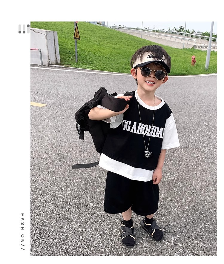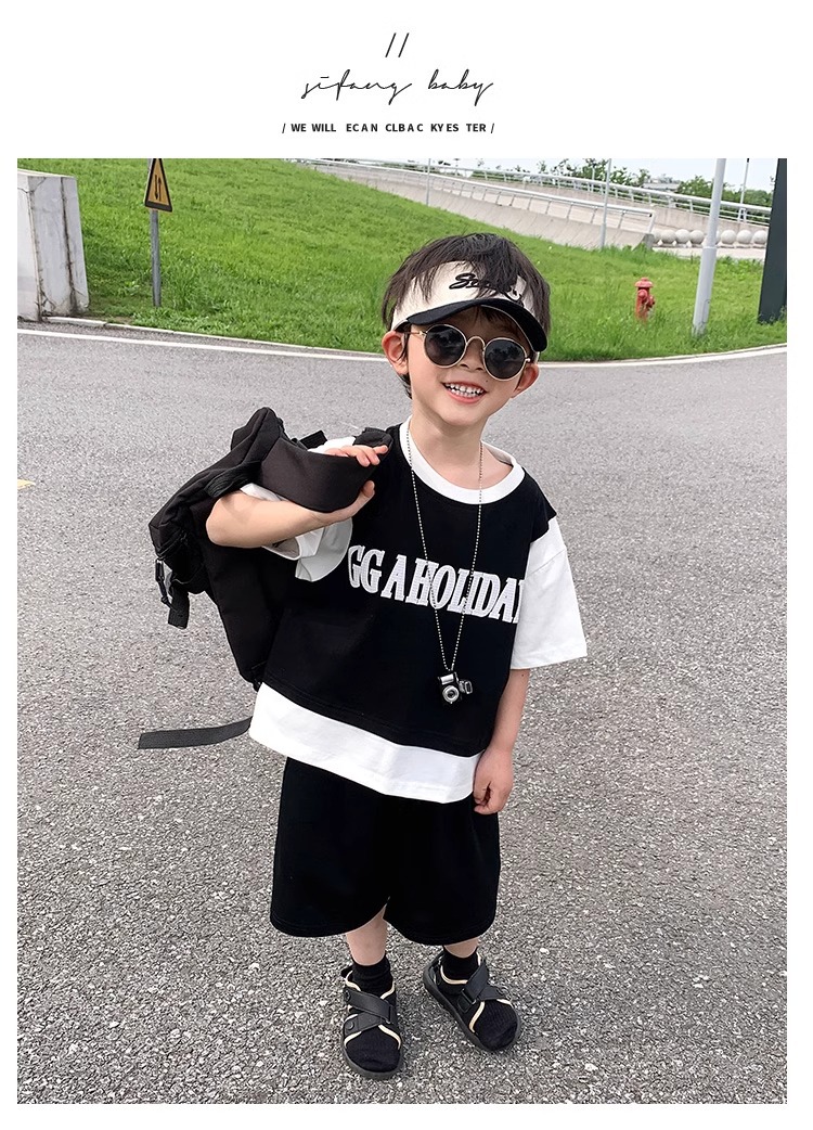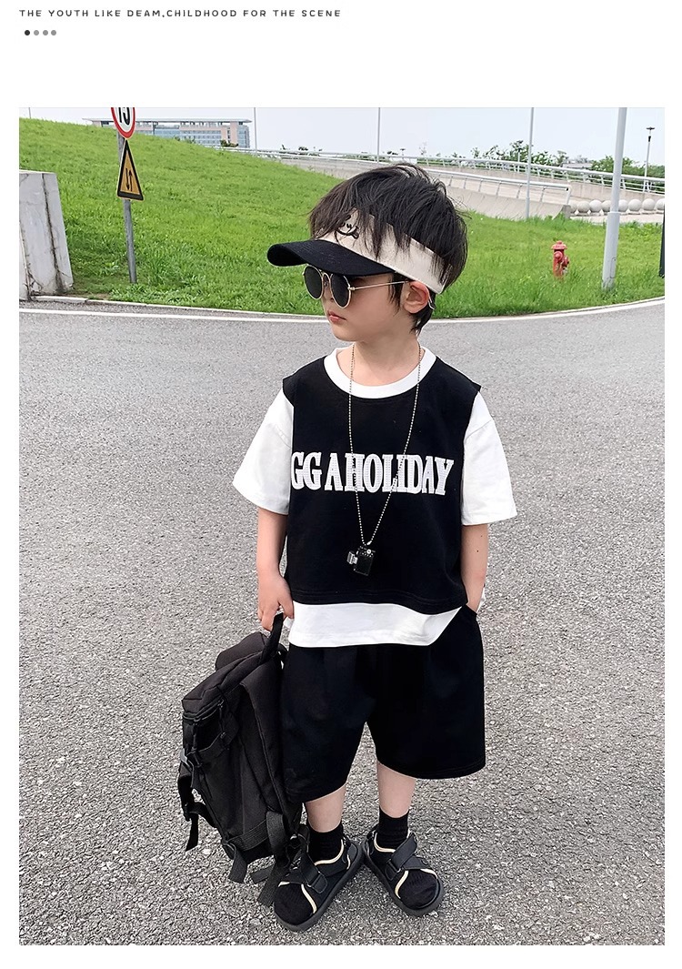소년 여름 옷 어린이 반팔 세트 패션 세련된 한국 스타일 아기의 여름 옷 소년의 투피스 세트