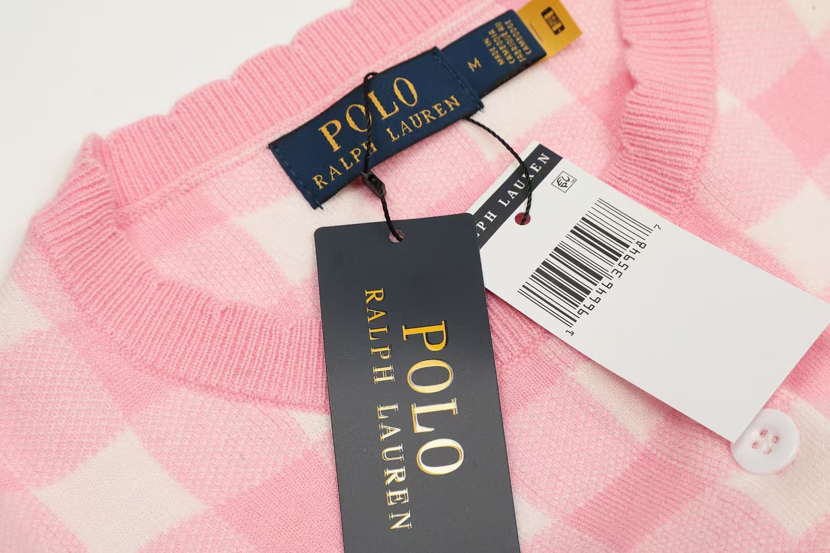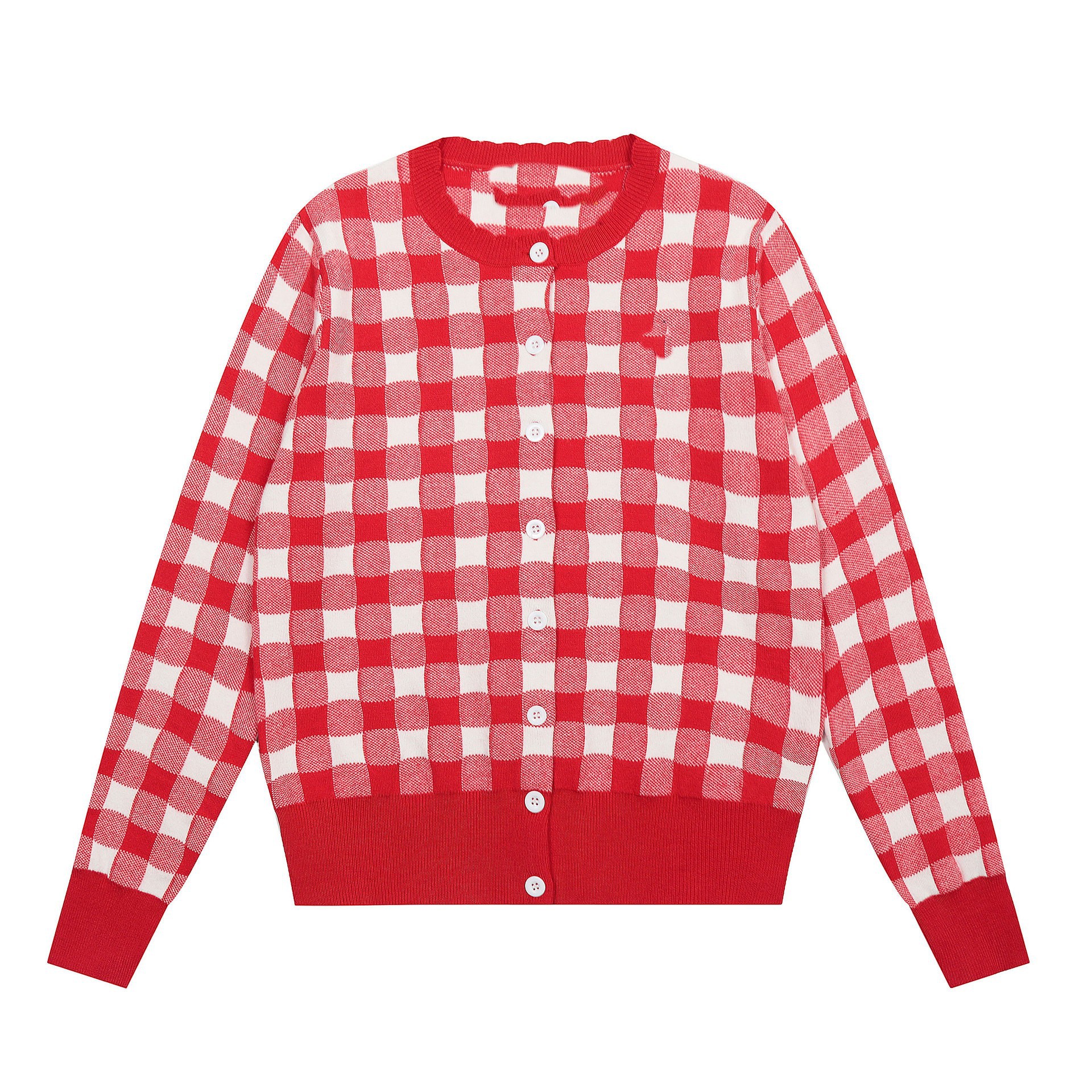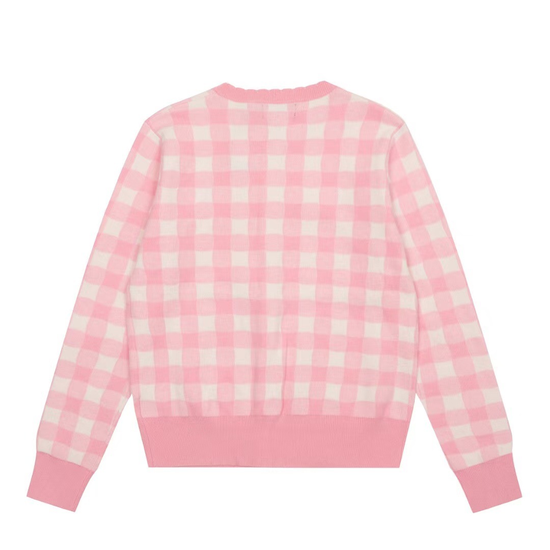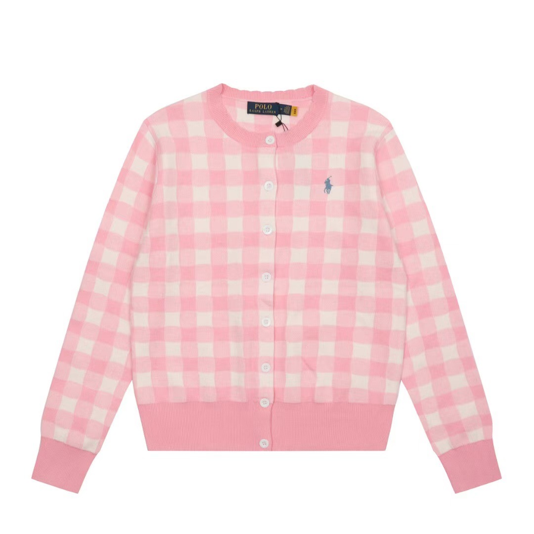 [고품질] 스캔 가능한 RL 러프 포니 로고 자수 체크 무늬 니트 카디건 탑 재킷 여성용 드롭 배송스토어 가기