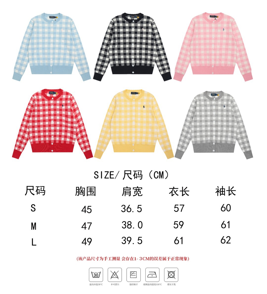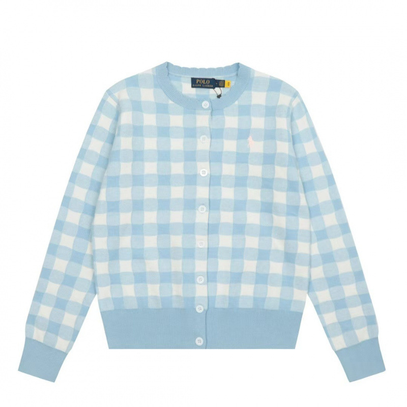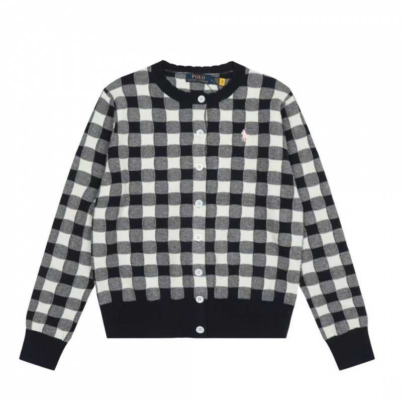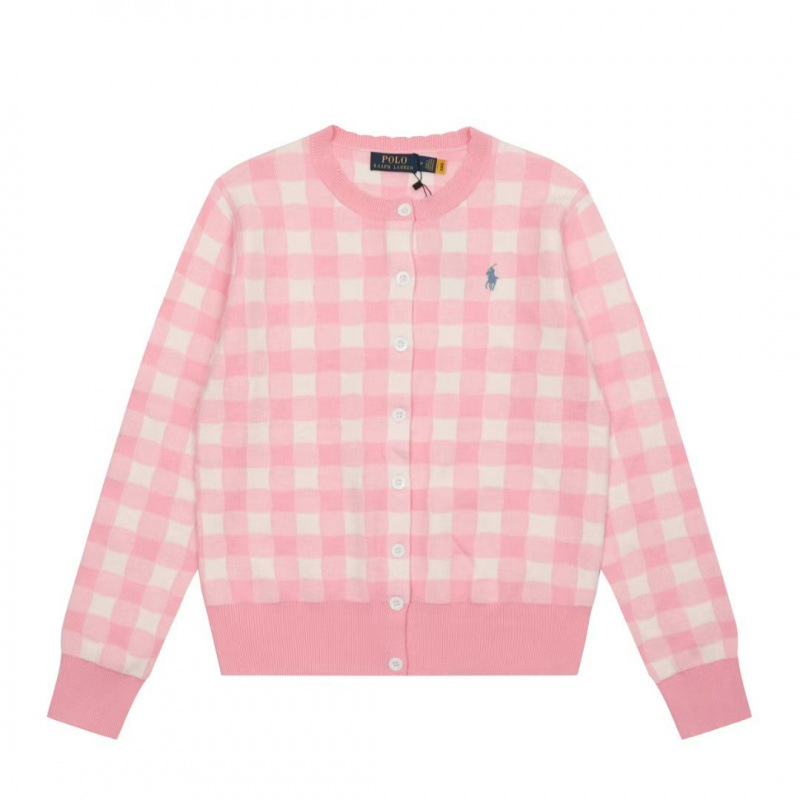 [고품질] 스캔 가능한 RL 러프 포니 로고 자수 체크 무늬 니트 카디건 탑 재킷 여성용 드롭 배송