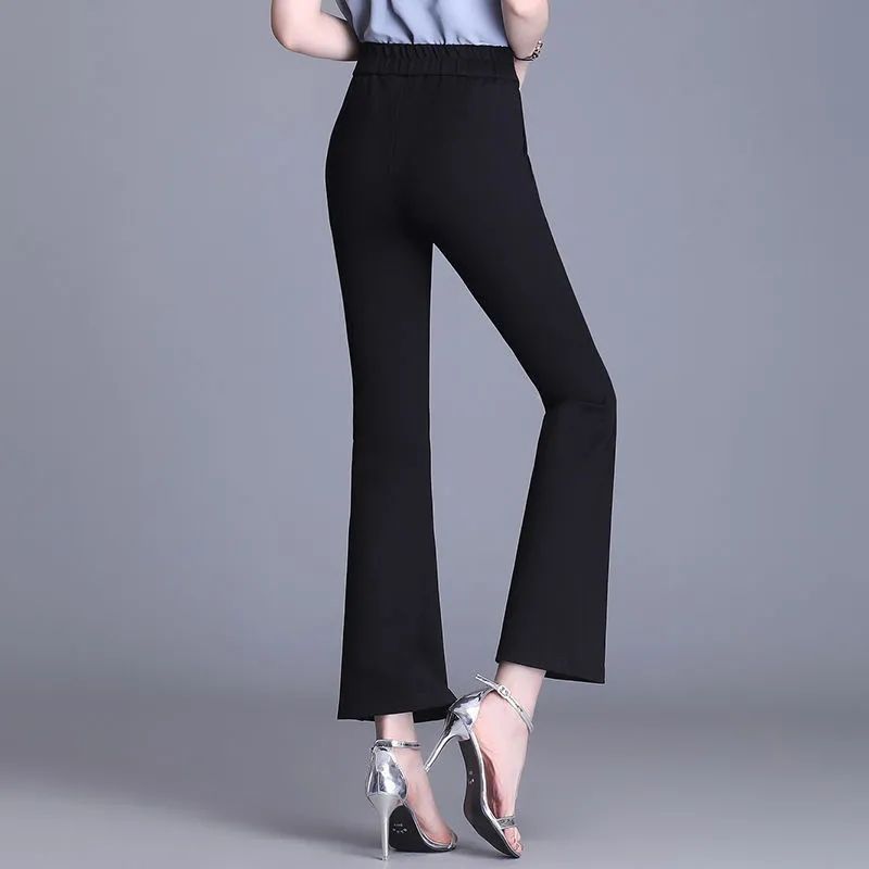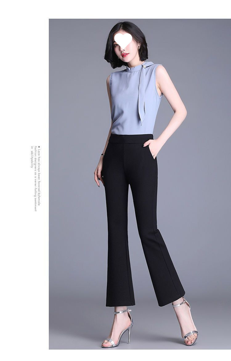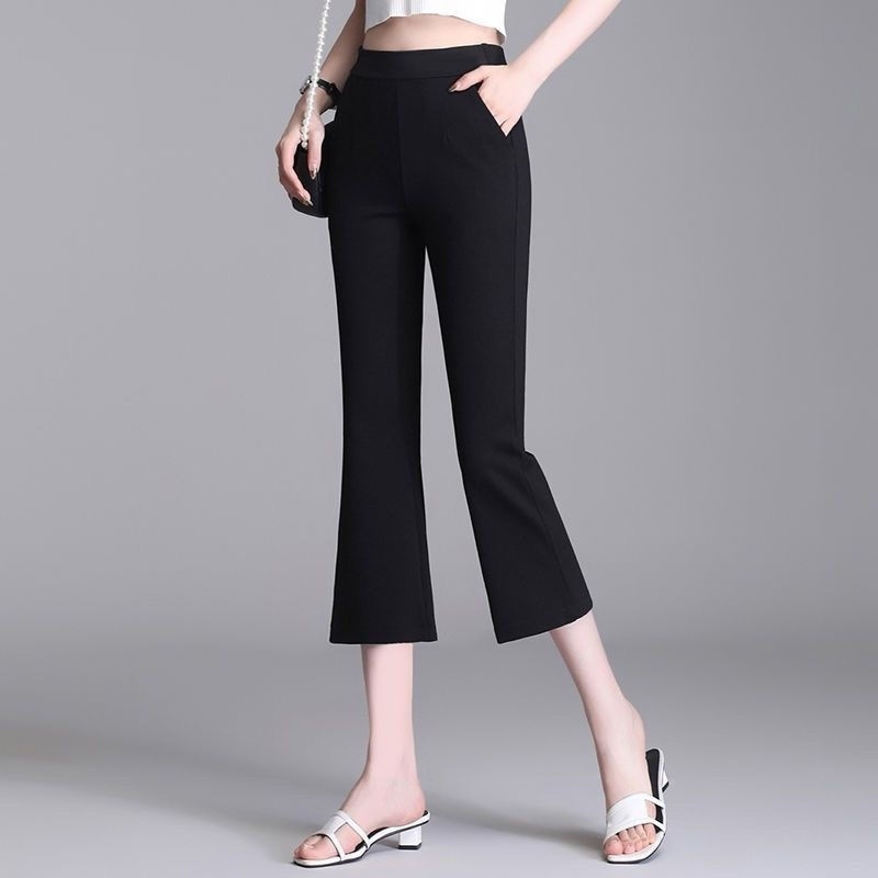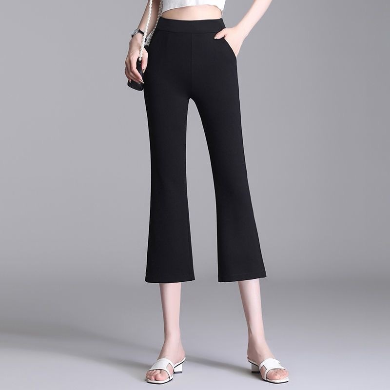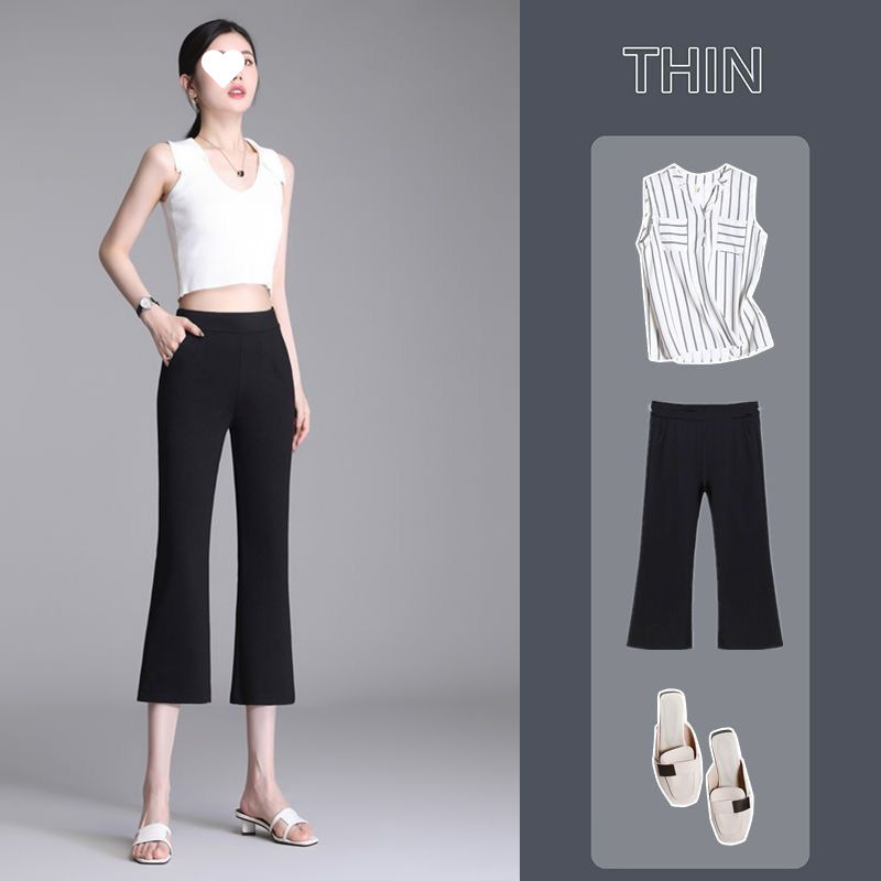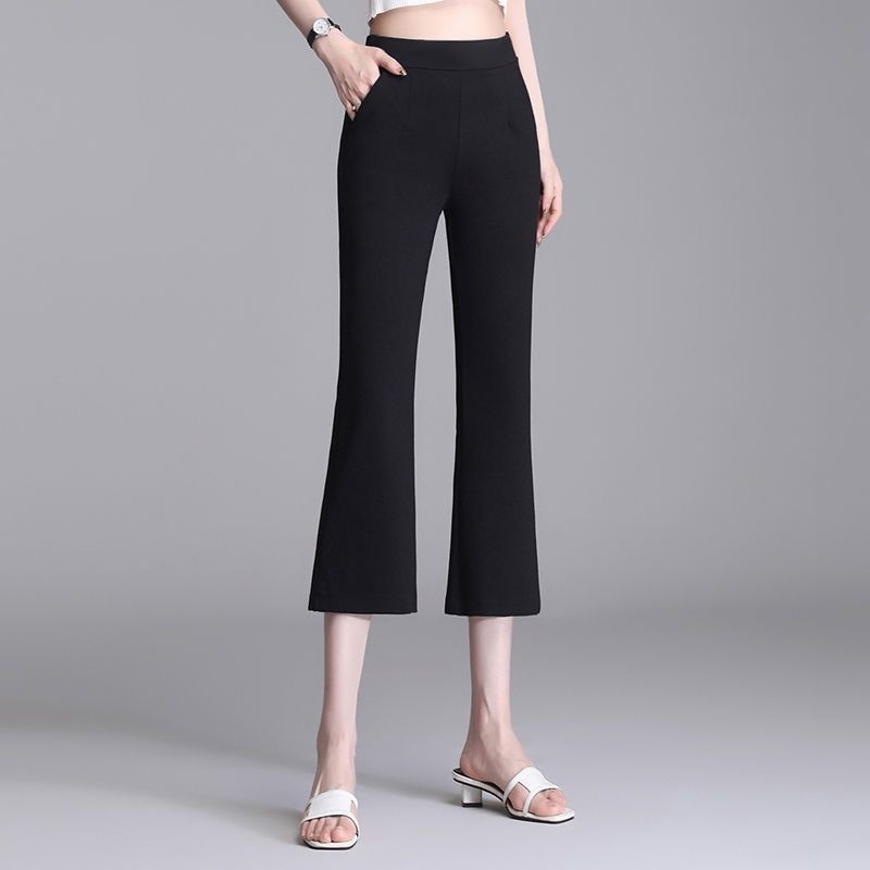 아이스 실크 작은 여성용 마이크로 팬츠 여름 9-8 하이 허리 슬리밍 캐주얼 플래 팬츠