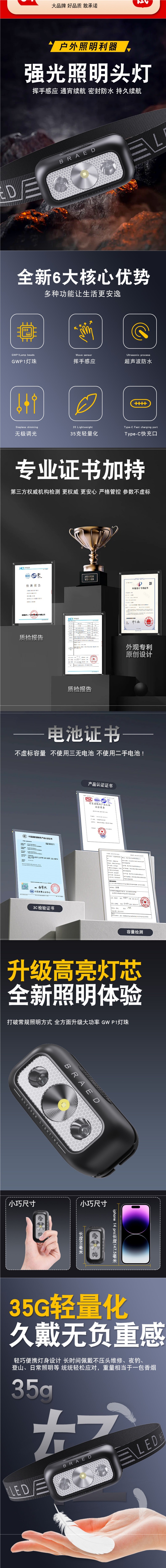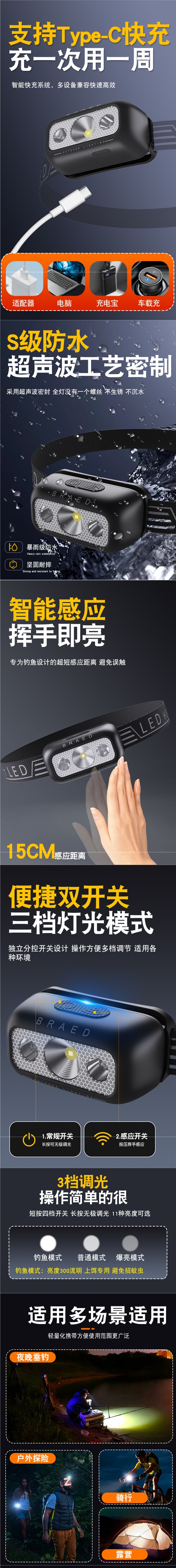 헤드라이트 낚시 웨이브 유도 긴 내구성 충전식 강한 빛 슈퍼 밝은 머리 장착 야생 낚시 밤 낚시 도매