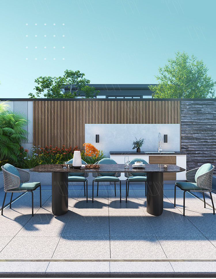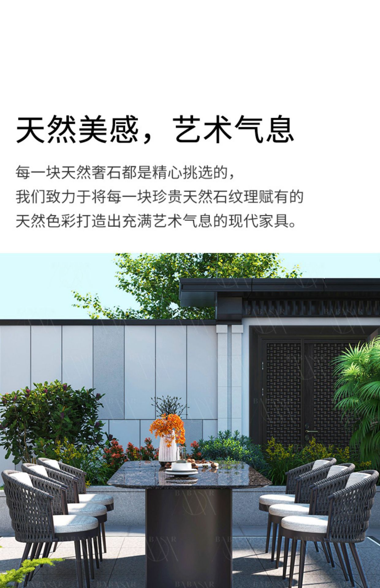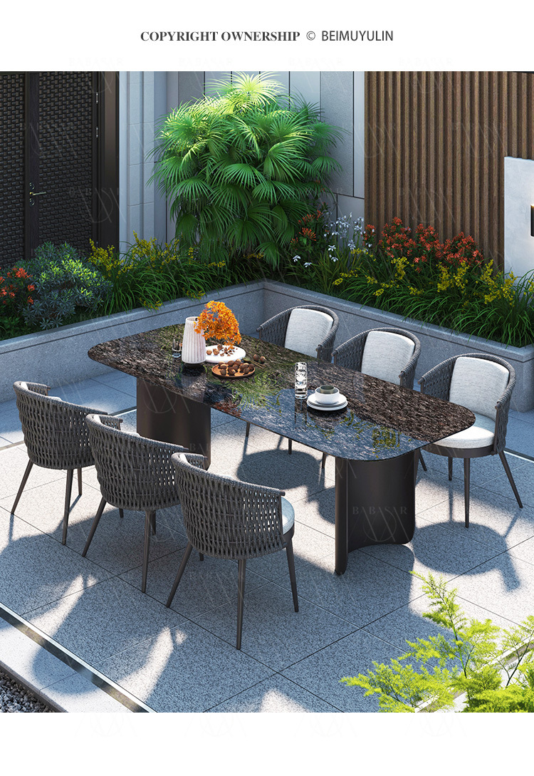 야외 코트야드 럭셔리 스톤 록 보드 다이닝 테이블 수입 라이트 럭셔리 빌라 코트야드 발코니 야외 코트야드 호텔 다이닝 테이블 다이닝 의자스토어 가기