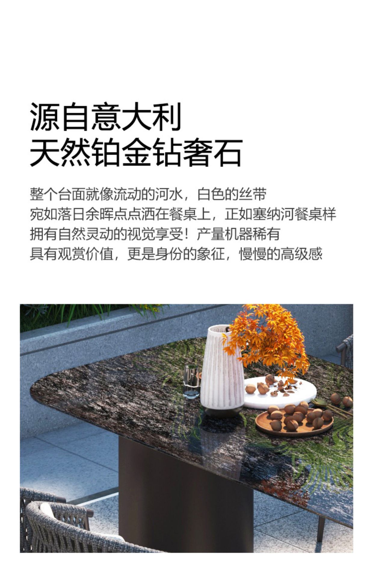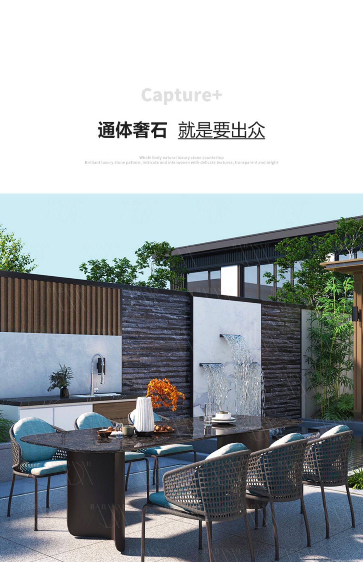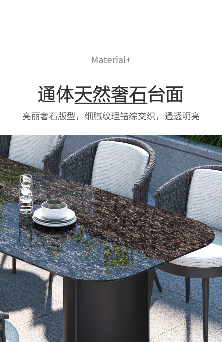 야외 코트야드 럭셔리 스톤 록 보드 다이닝 테이블 수입 라이트 럭셔리 빌라 코트야드 발코니 야외 코트야드 호텔 다이닝 테이블 다이닝 의자