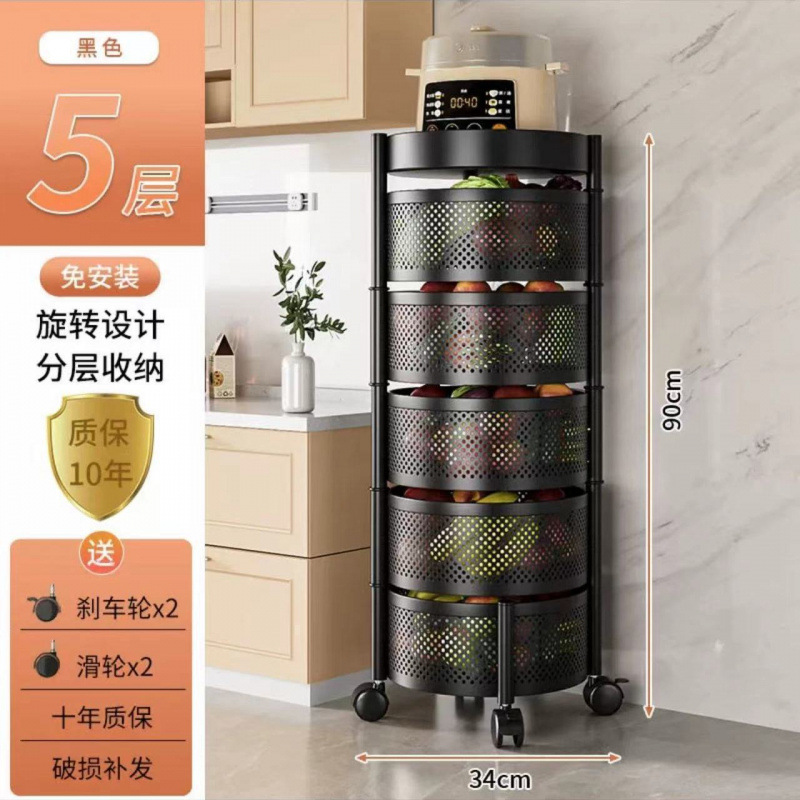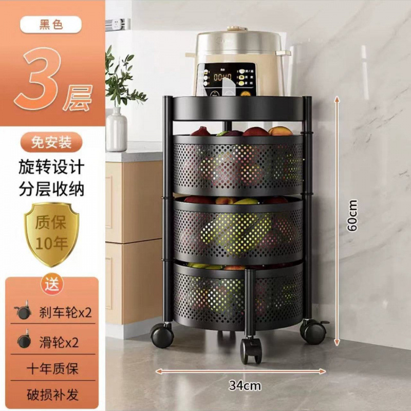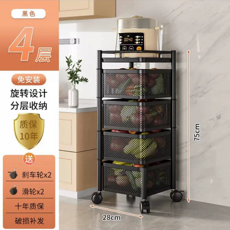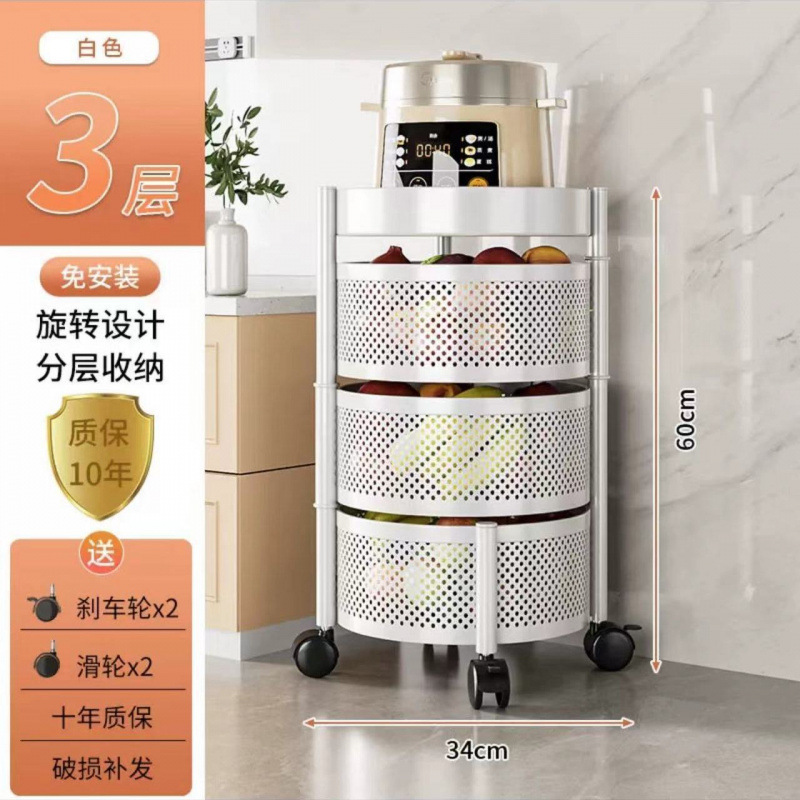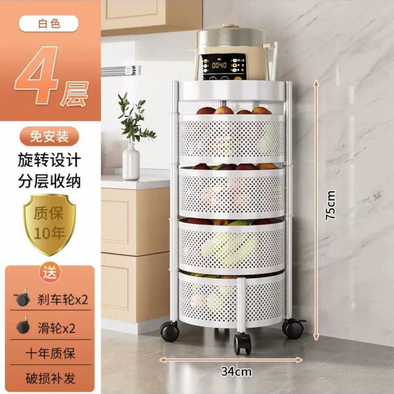 주방 회전 저장 선반 바닥 다층 가정용 거실 스낵 저장 랙 과일 및 야채 다기능 카트 선반