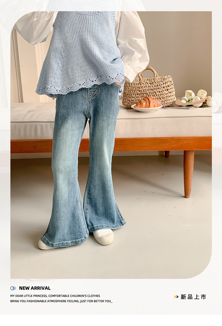어린이 센 어린이 말 소녀 청바지 봄 2025 새로운 어린이 봄 분할 뿔 바지 소녀 캐주얼 바지