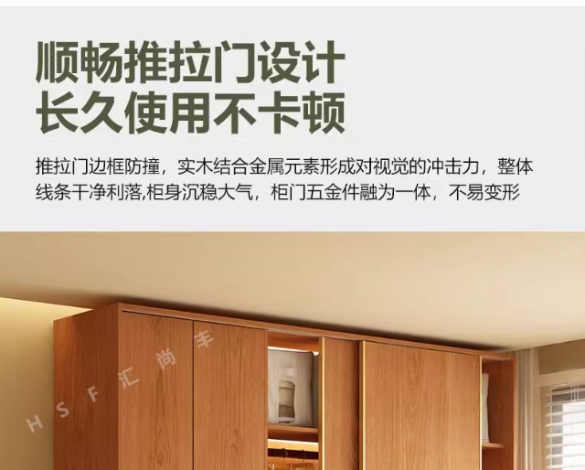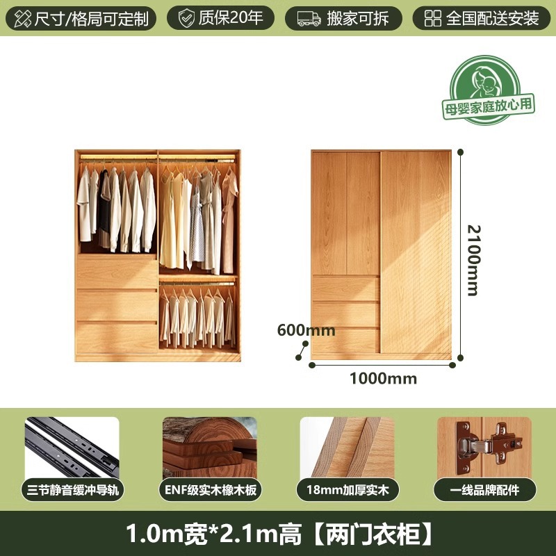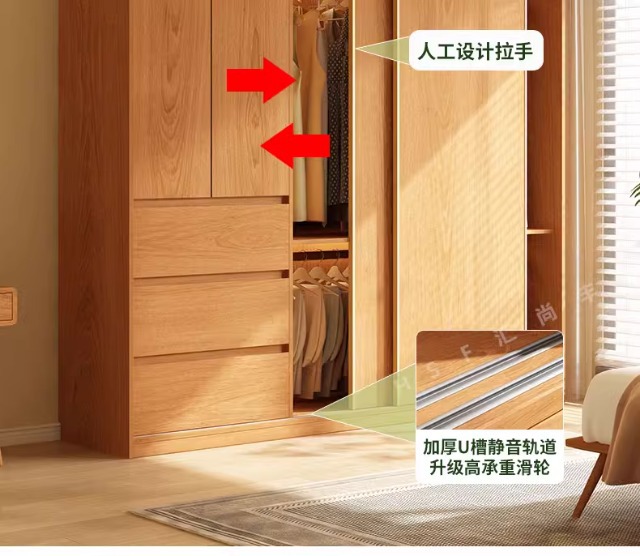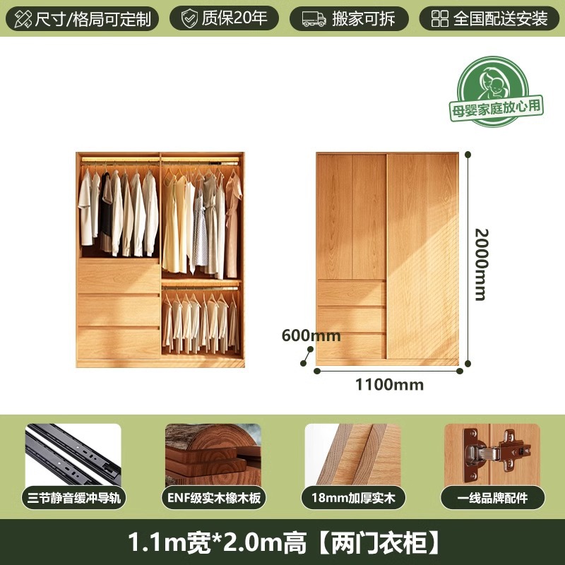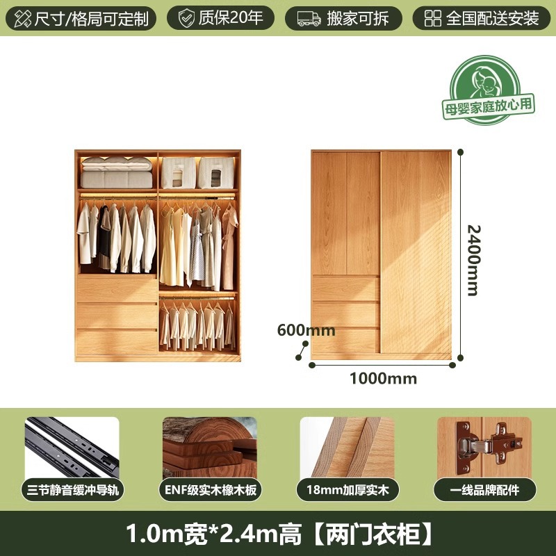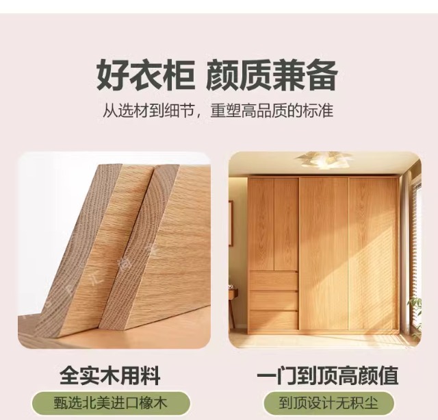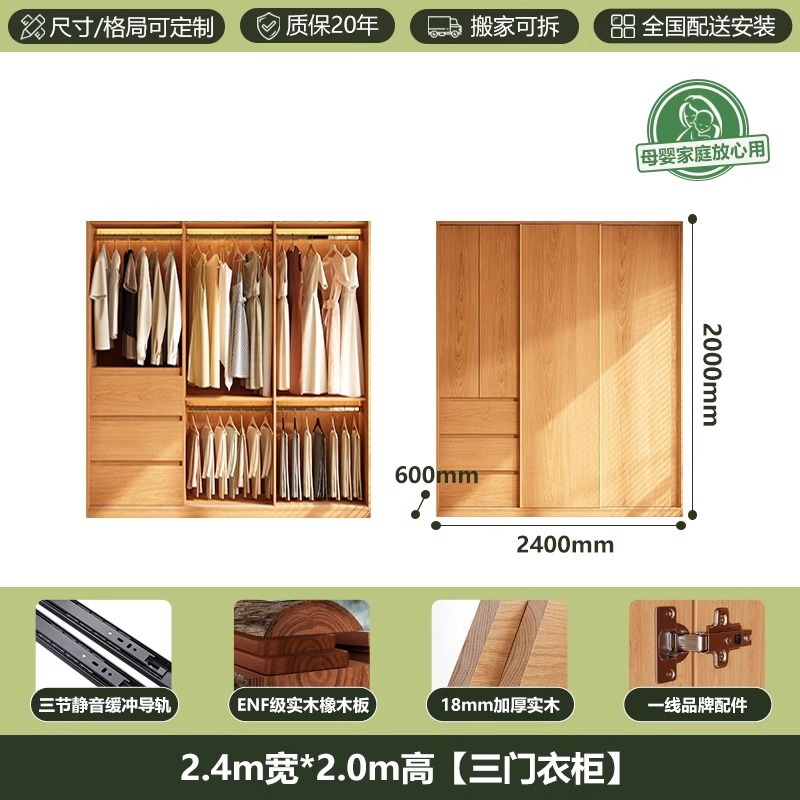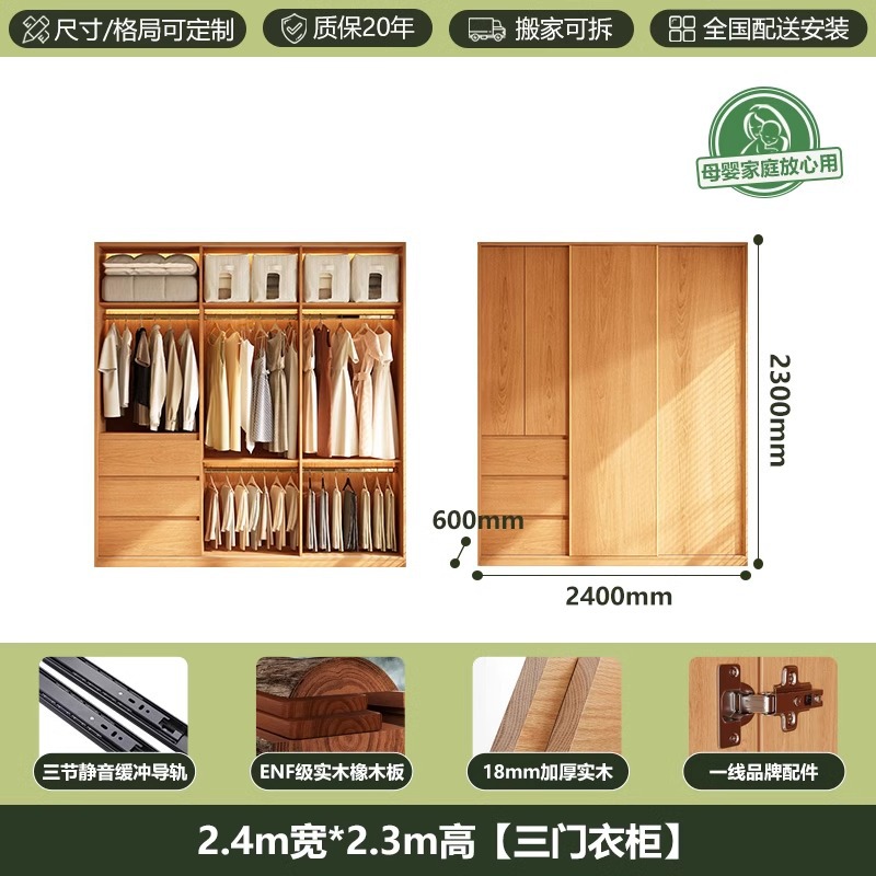 풀 솔리드 우드 옷장 슬라이딩 도어 오크 가정용 침실 북유럽 새로운 2025 폭발 스토리지 슬라이딩 도어 캐비닛