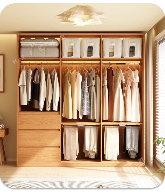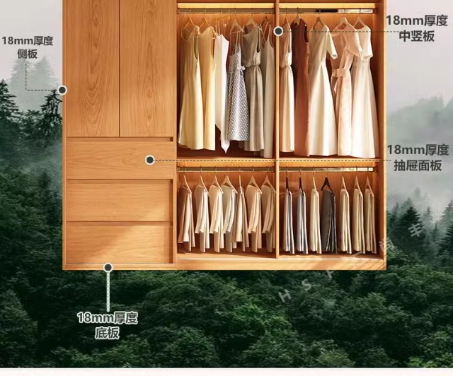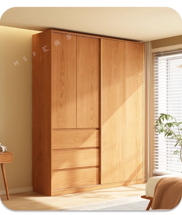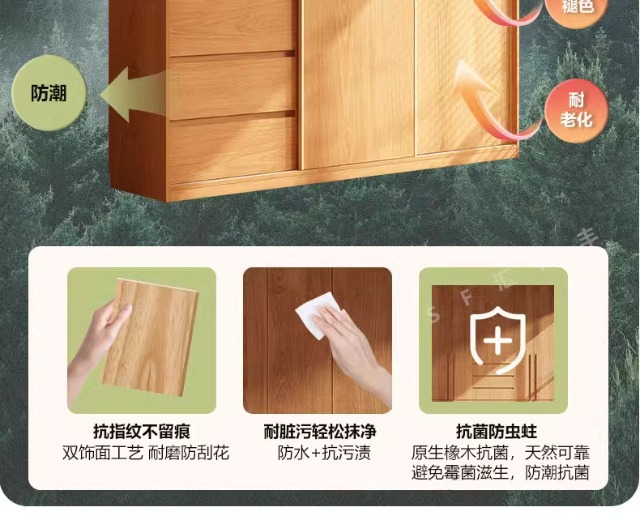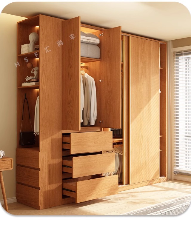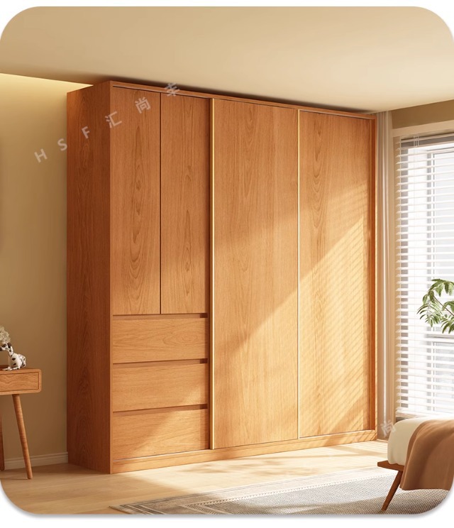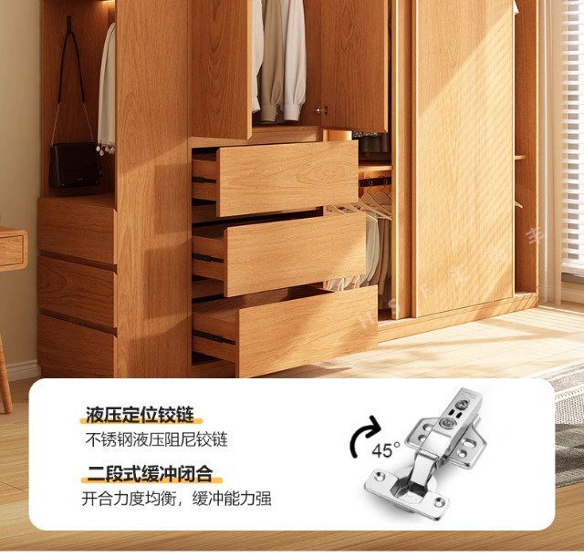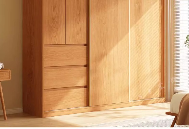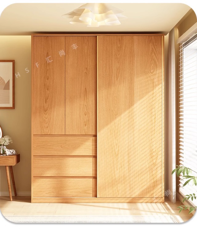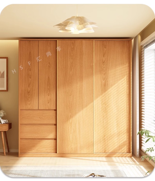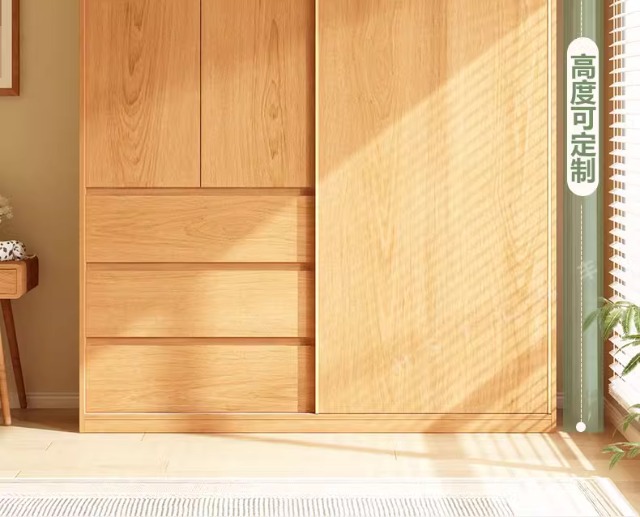 풀 솔리드 우드 옷장 슬라이딩 도어 오크 가정용 침실 북유럽 새로운 2025 폭발 스토리지 슬라이딩 도어 캐비닛