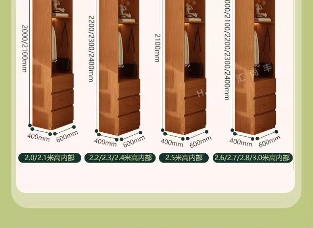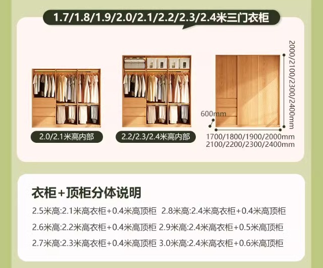 • [폭 2.1m*높이 2.0m] 3도어 옷장 [전체 원목] ENF 등급