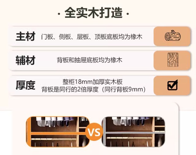 • [폭 1.8m*높이 2.4m] 3도어 옷장 [전체 원목] ENF 등급