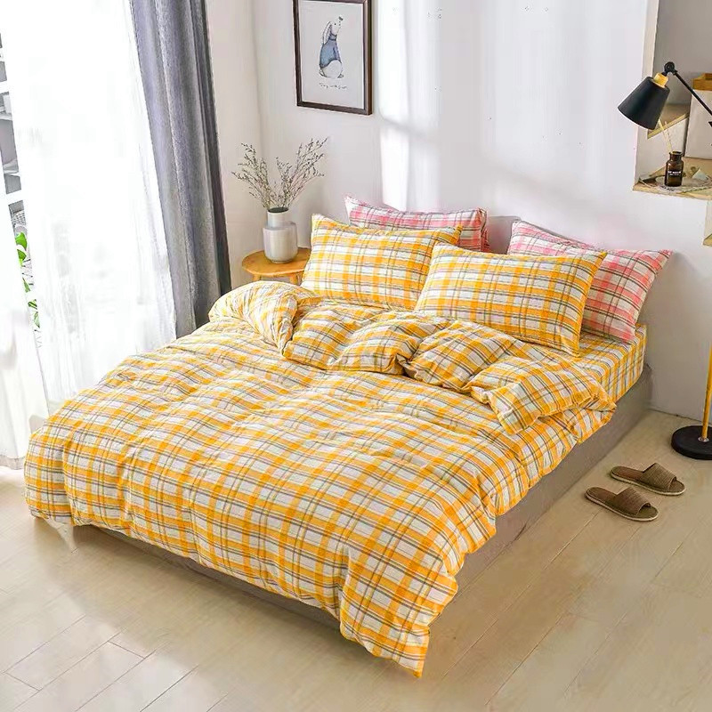 씻은 면 침구 일본 스타일 단색 침대 시트 인쇄되지 않은 스타일 격자 무늬 퀼트 겨울 스타일 침구 베개 침대 시트