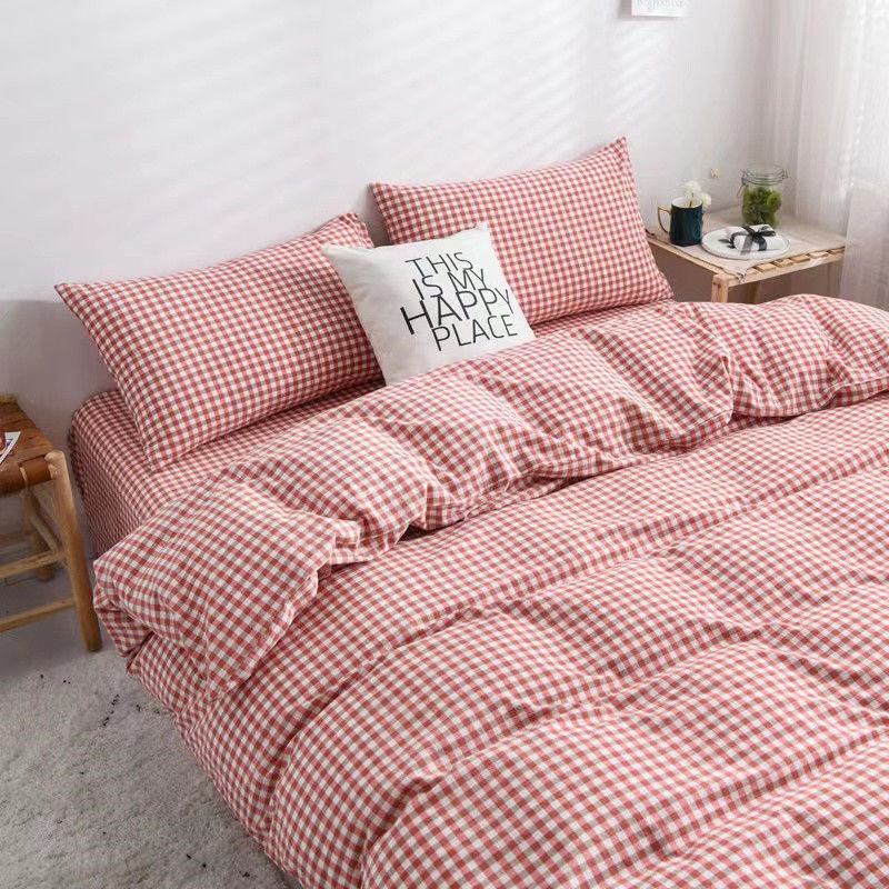 씻은 면 침구 일본 스타일 단색 침대 시트 인쇄되지 않은 스타일 격자 무늬 퀼트 겨울 스타일 침구 베개 침대 시트스토어 가기