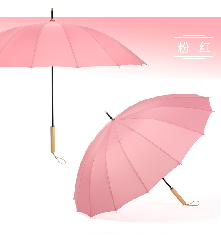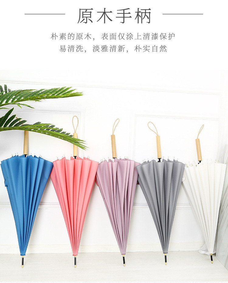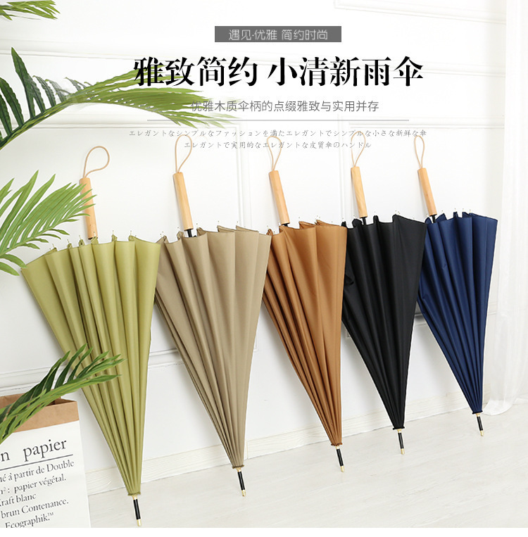 크리에이티브 우산은 로고 레트로 솔리드 우드 써니 우산을 설정할 수 있습니다. 16K 접히는 긴 손잡이 광고 우산 비즈니스 스트레이트 우산스토어 가기