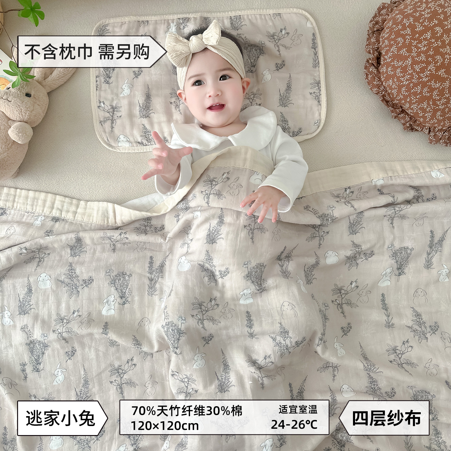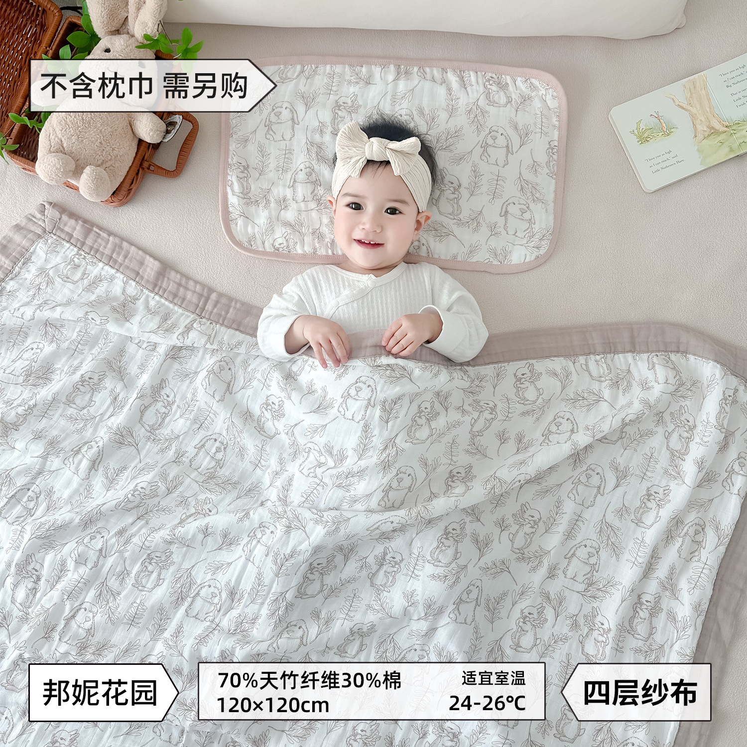 • Runaway Bunny-대나무 면 4겹 거즈 담요 [박스형]