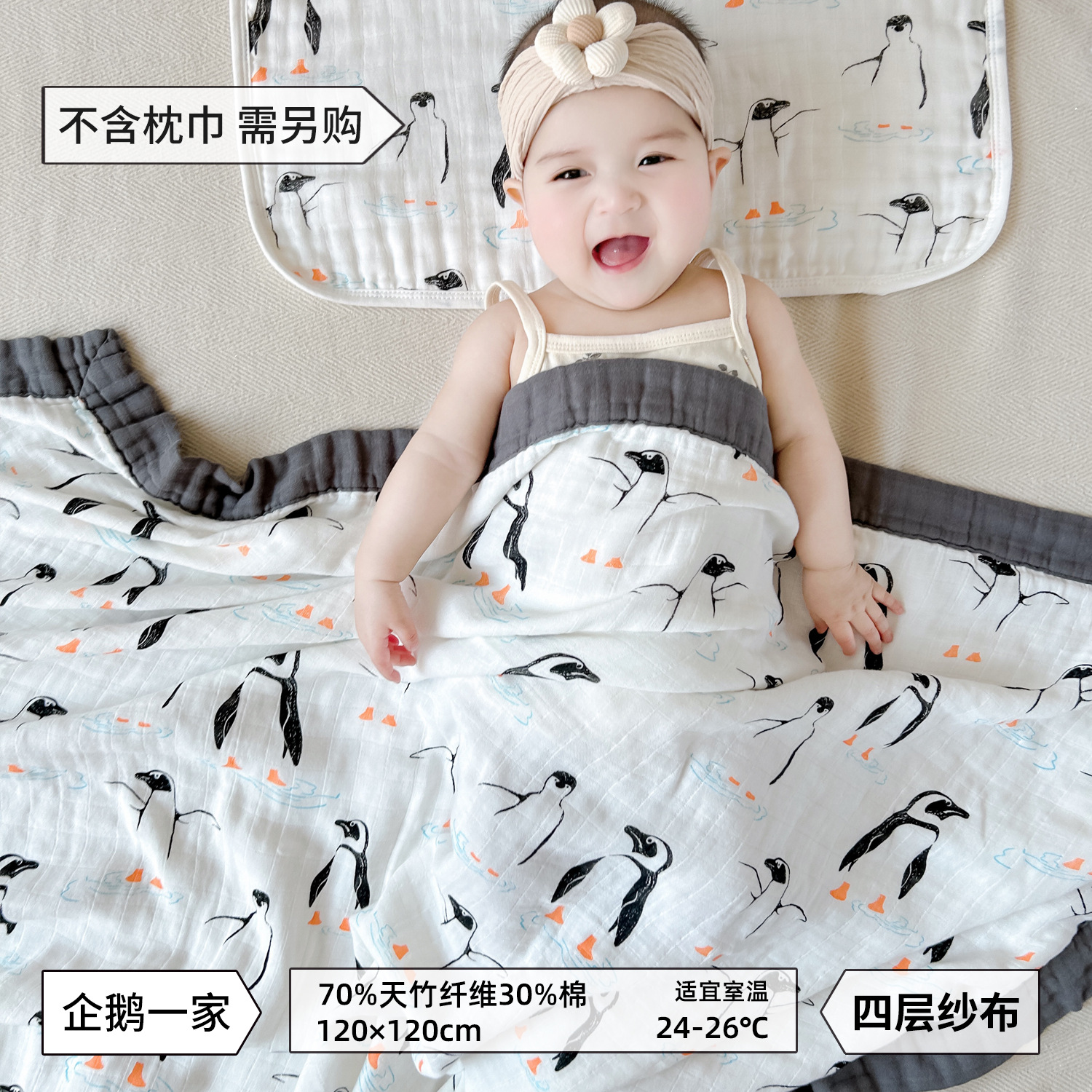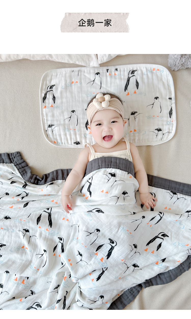 • 펭귄가족-대나무면 4겹 거즈 담요 [박스형]