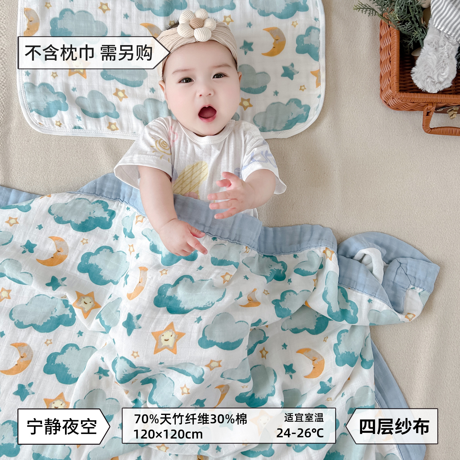 • 고요한 밤하늘-대나무면 4겹 거즈 담요 [박스형]